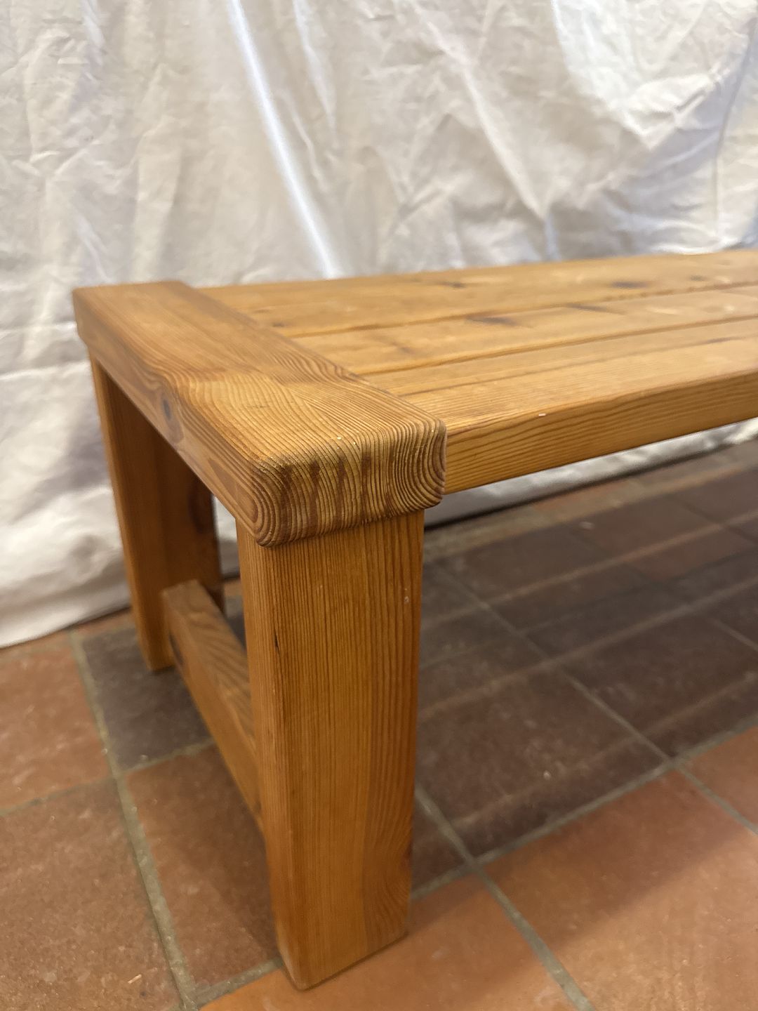Svensk møbeldesign lav bænk udført i massiv fyr.