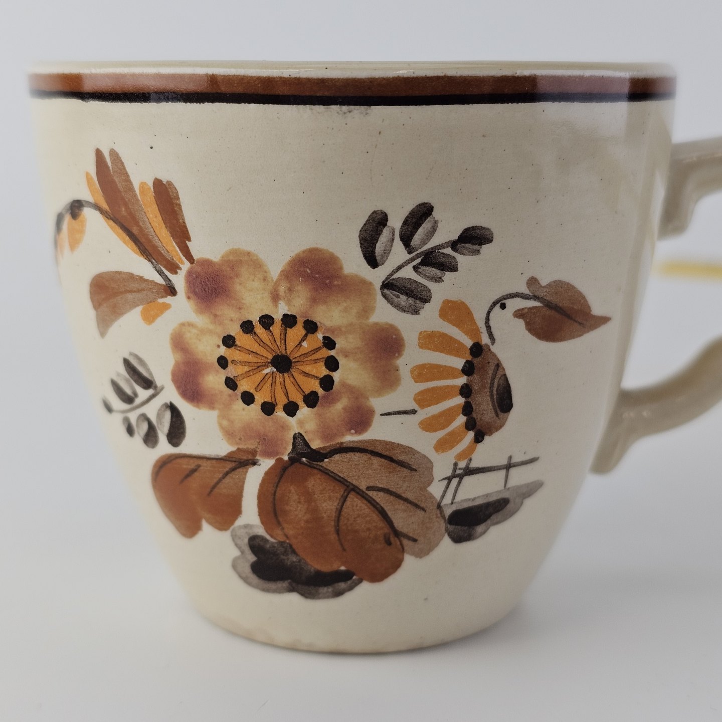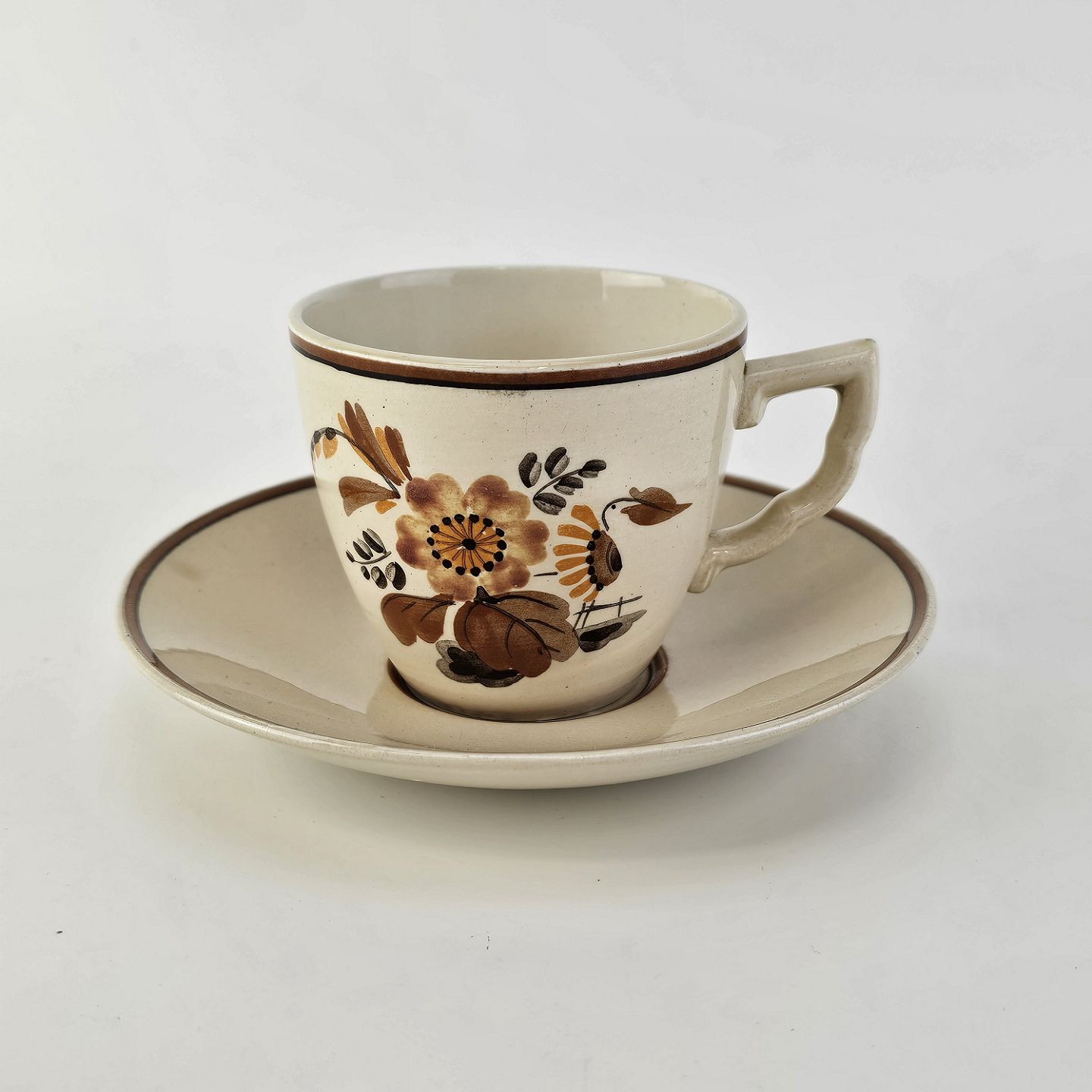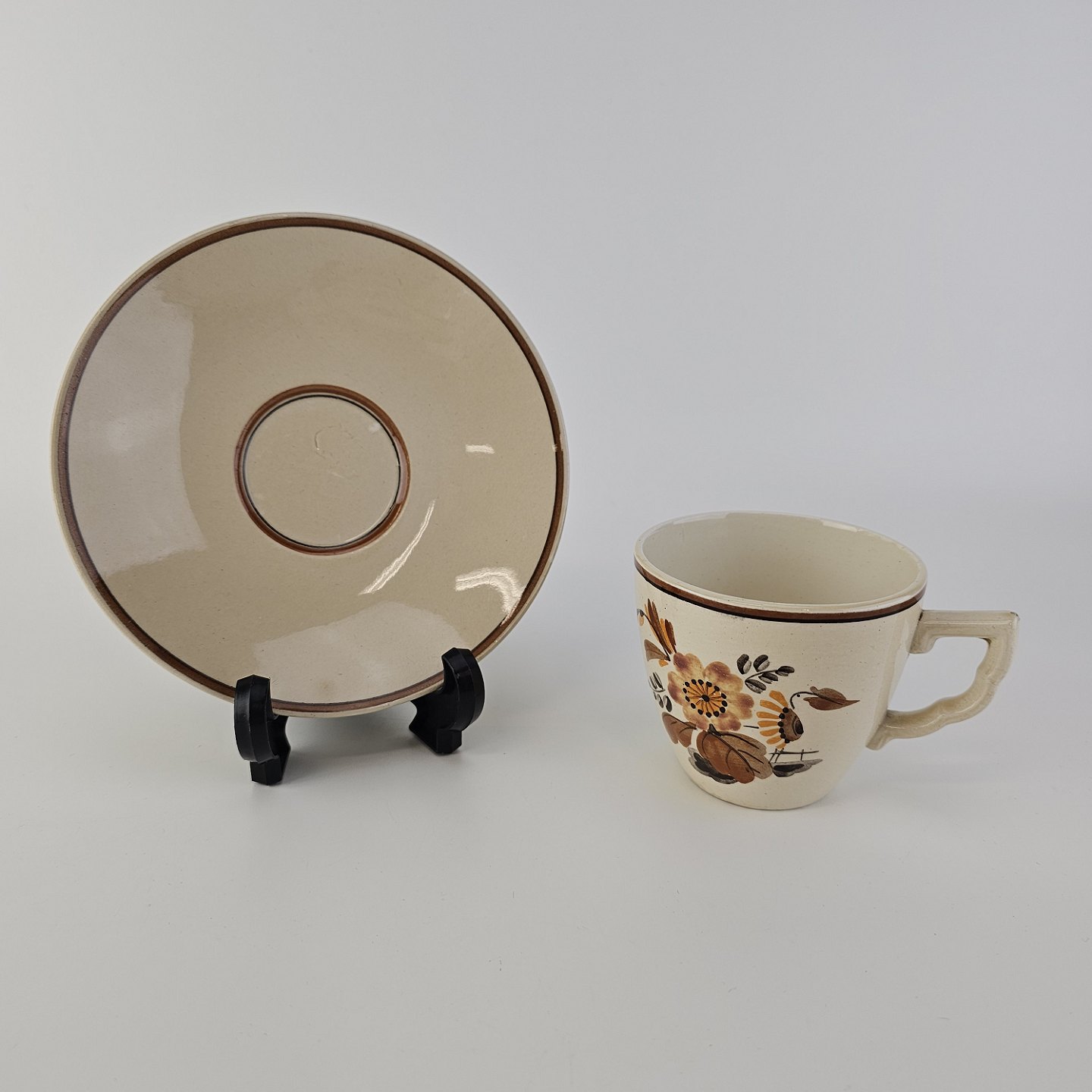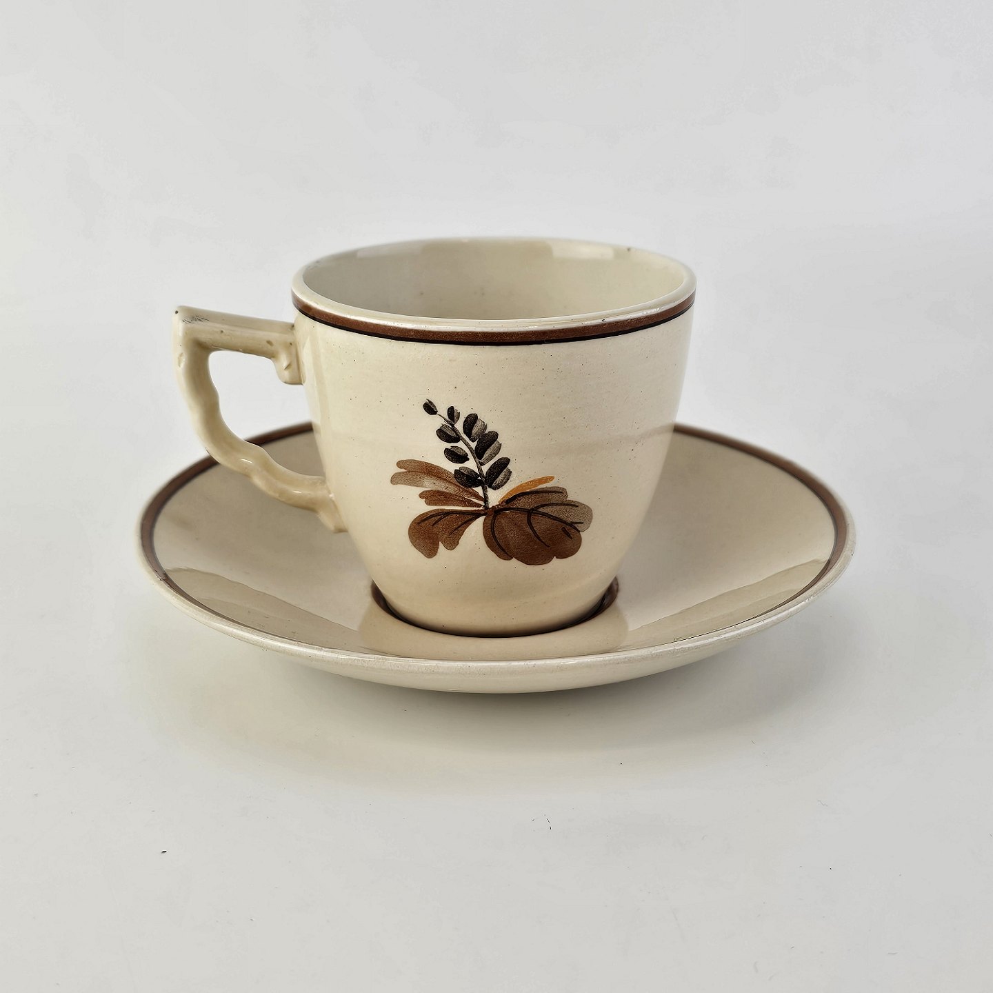 Kop med underkop i fajance fra stellet Knud