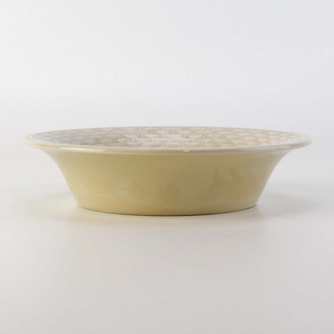 Sandfarvet fajancestel i stelform Viktoria II - Fletværk med dekoration af hvidt flet på gullig baggrund.
