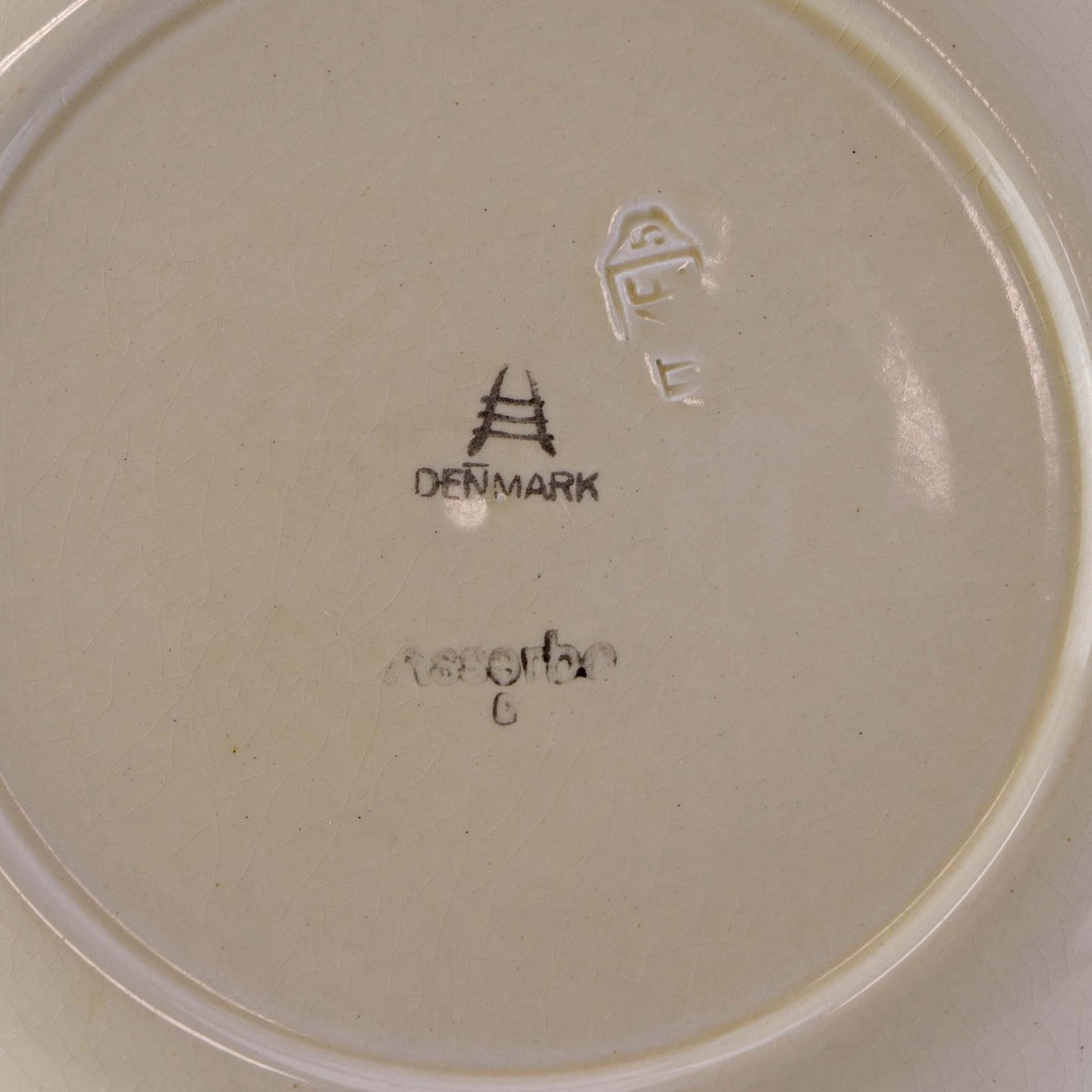 Lille dyb tallerken i fajance fra stellet Asserbo fremstillet i perioden 1933-1965