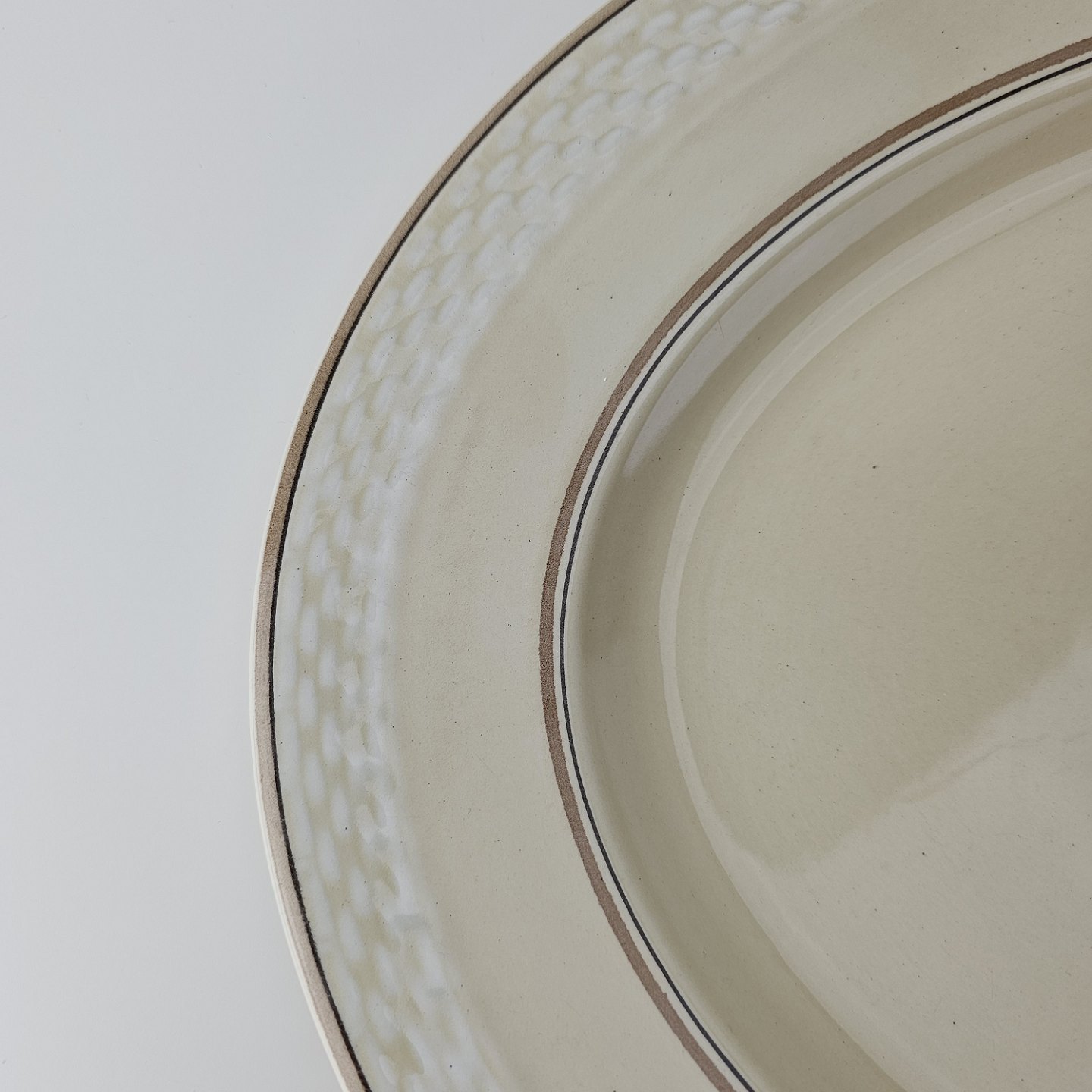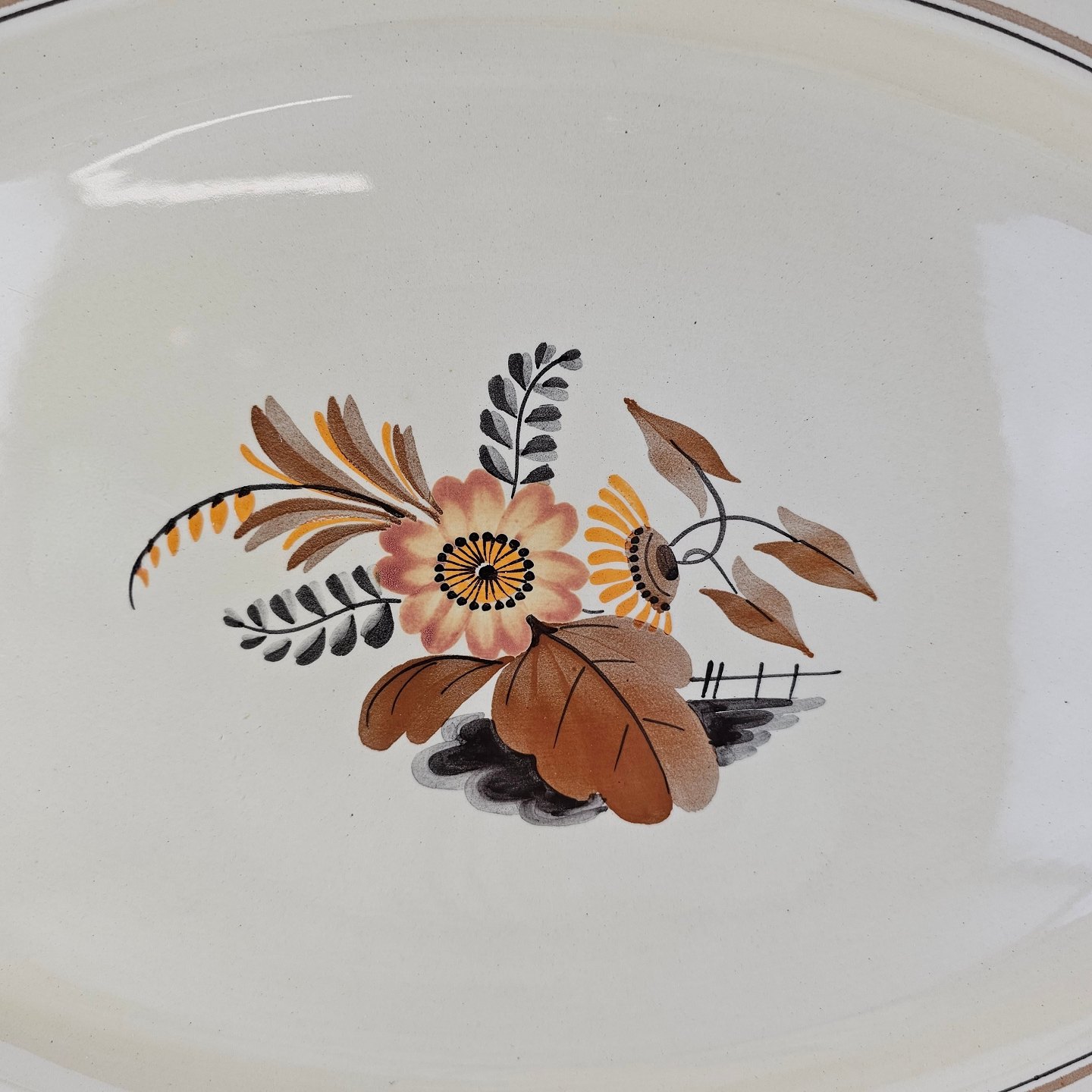 Knud er cremefarvet fajance dekoreret med flettet kant og brune og orange blomster. Stellet blev produceret i år 1934-1963.