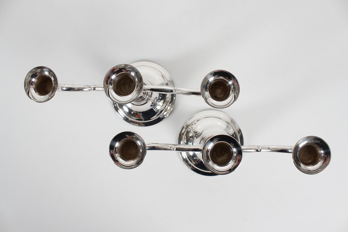 Par 3-armede sølvlysestager med udfyldte bunde