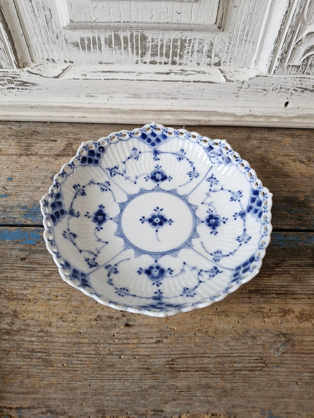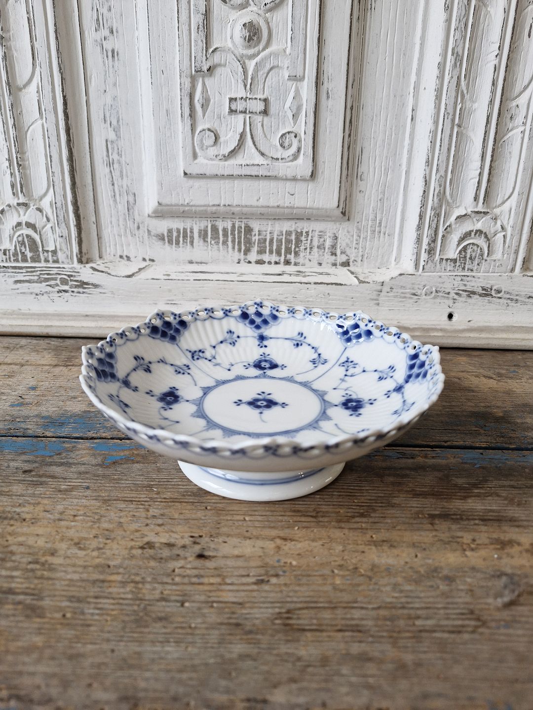 Text zugänglich auf Dänische: Royal Copenhagen Musselmalet helblonde skål på lav fod no. 1023