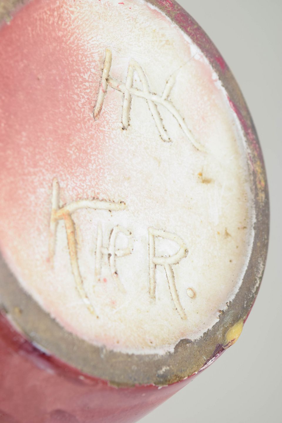 Unika uglevase i kunstkeramik med ugledekoration langs randen i relief og iriserende glasur i røde og blå nuancer. Fremstillet hos Kähler i 1890’erne under Karl Hansen Reistrups kunstneriske ledelse fra 1888.