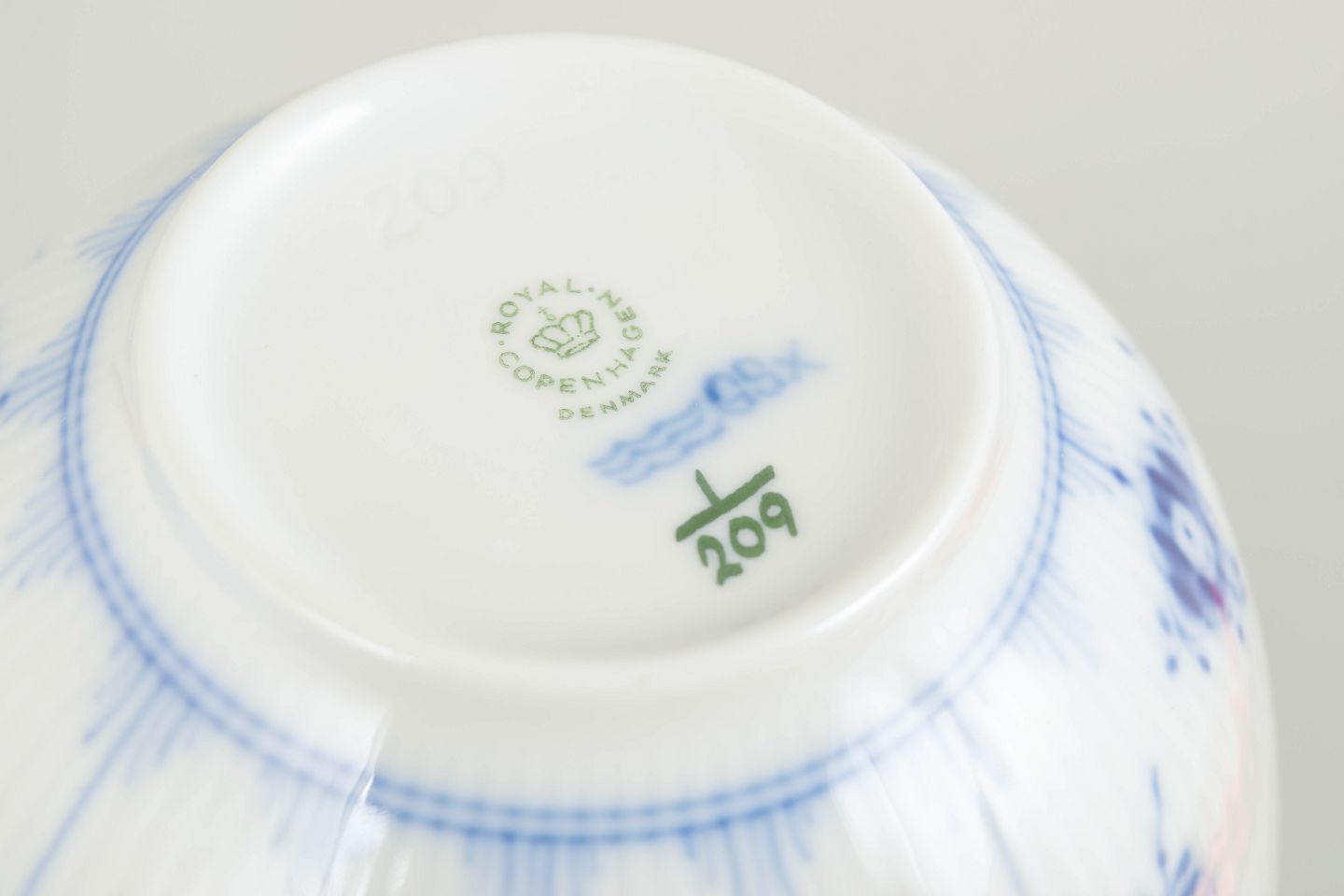 Royal Copenhagen blev grundlagt i 1775 i København under kongelig bevilling. Fabrikken er internationalt anerkendt for sit håndmalede porcelæn og sit høje kunstneriske niveau. Musselmalet Riflet er fabrikkens mest klassiske stel, introduceret i slutningen af 1700-tallet og fortsat produceret med traditionelle håndværksmetoder.