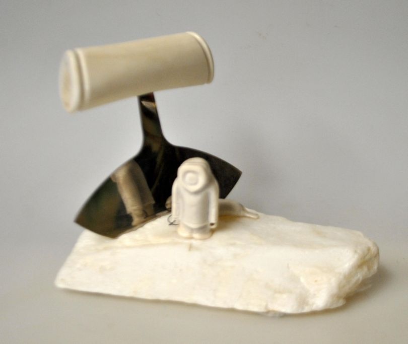 Grønlandsk figur, 2012. Figur og ulu i rensdyr knogle.