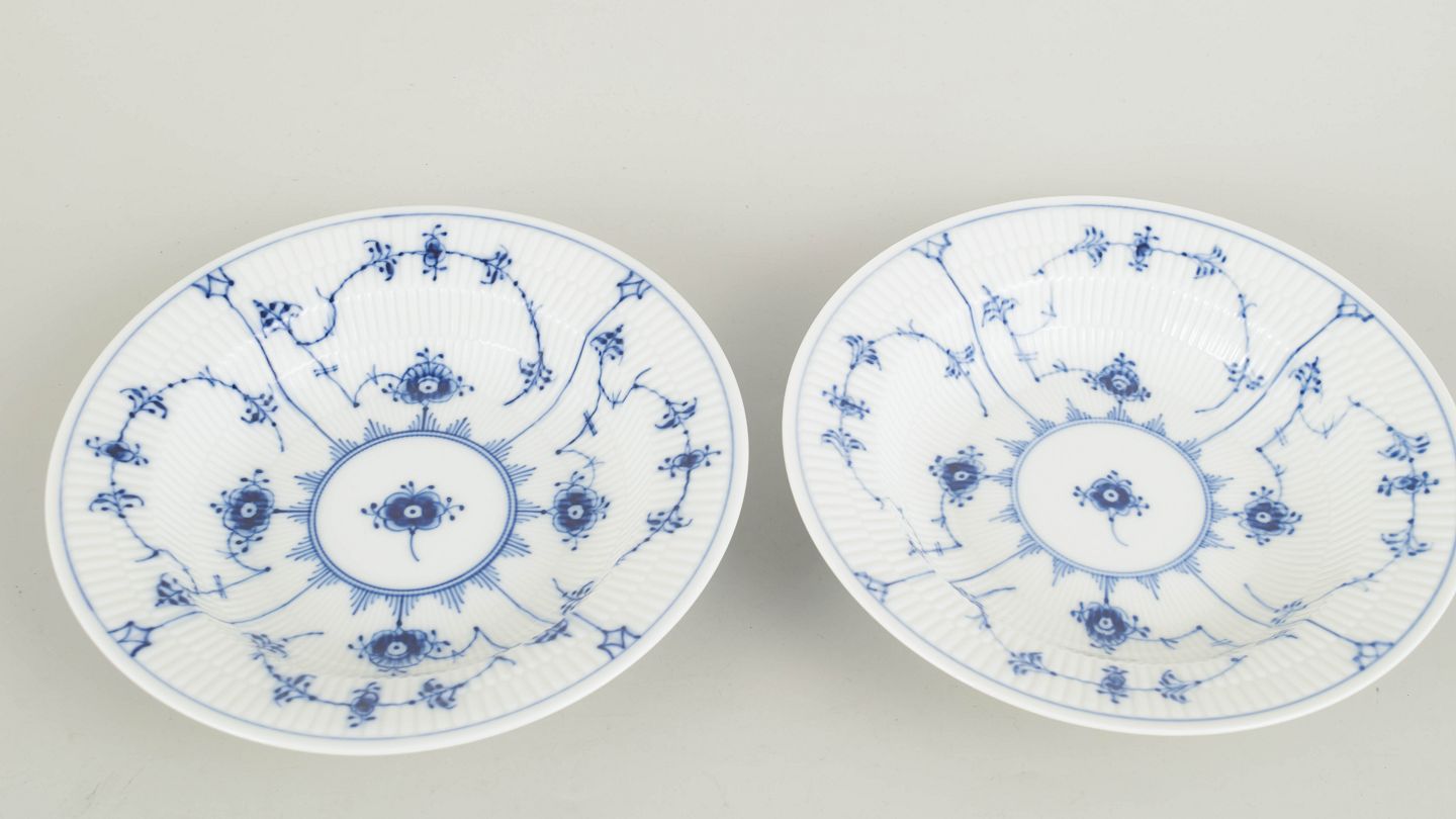 Text zugänglich auf Dänische: Royal Copenhagen Musselmalet Riflet dybe tallerkener, sæt af to.