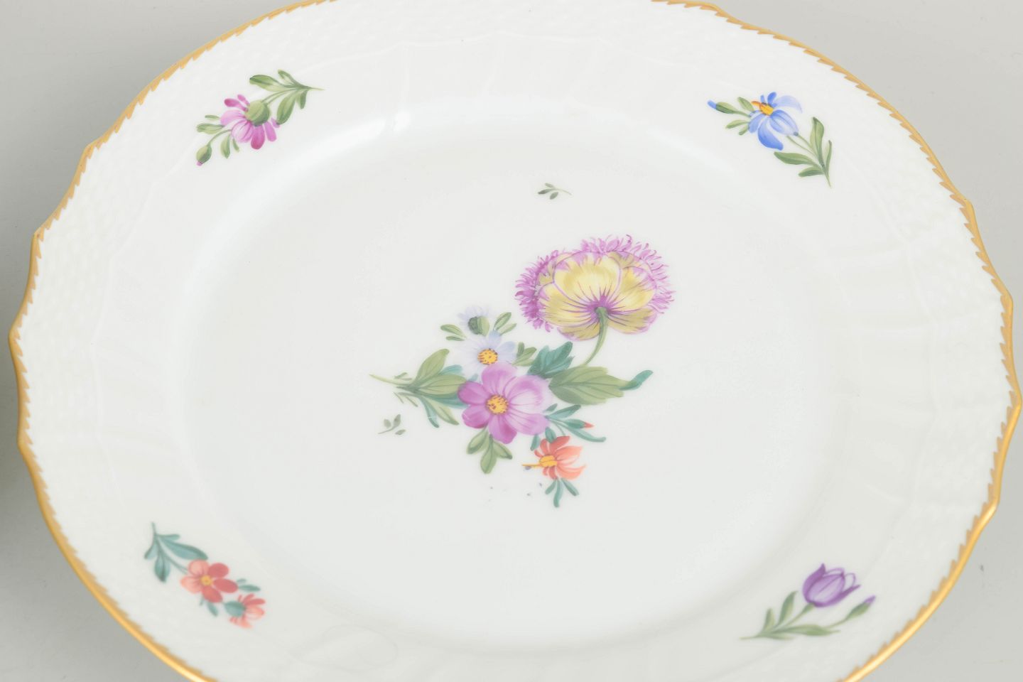 Håndmalet porcelæn dekoreret med saksisk blomst, model 493/1630. Første sortering.