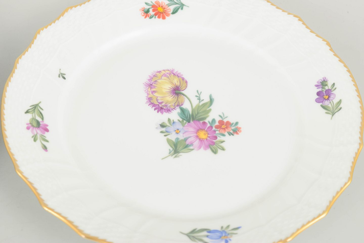 Håndmalet porcelæn dekoreret med saksisk blomst, model 493/1630. Første sortering.