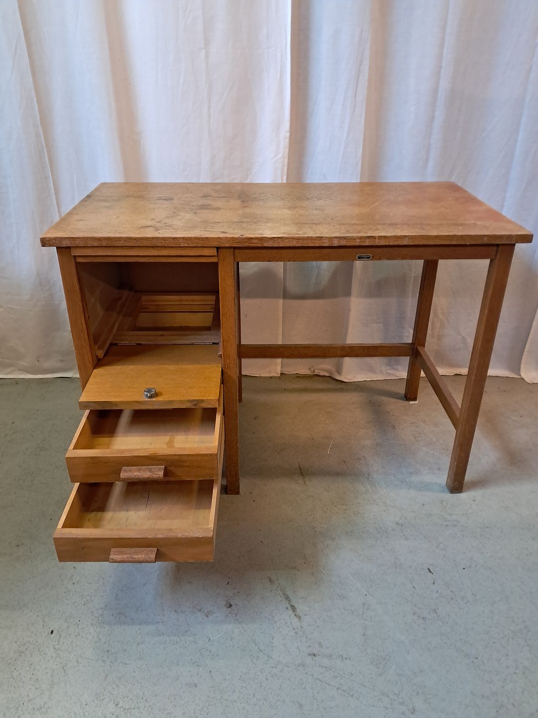 Børne skrivebord i fineret egetræ, fra 1950erne.