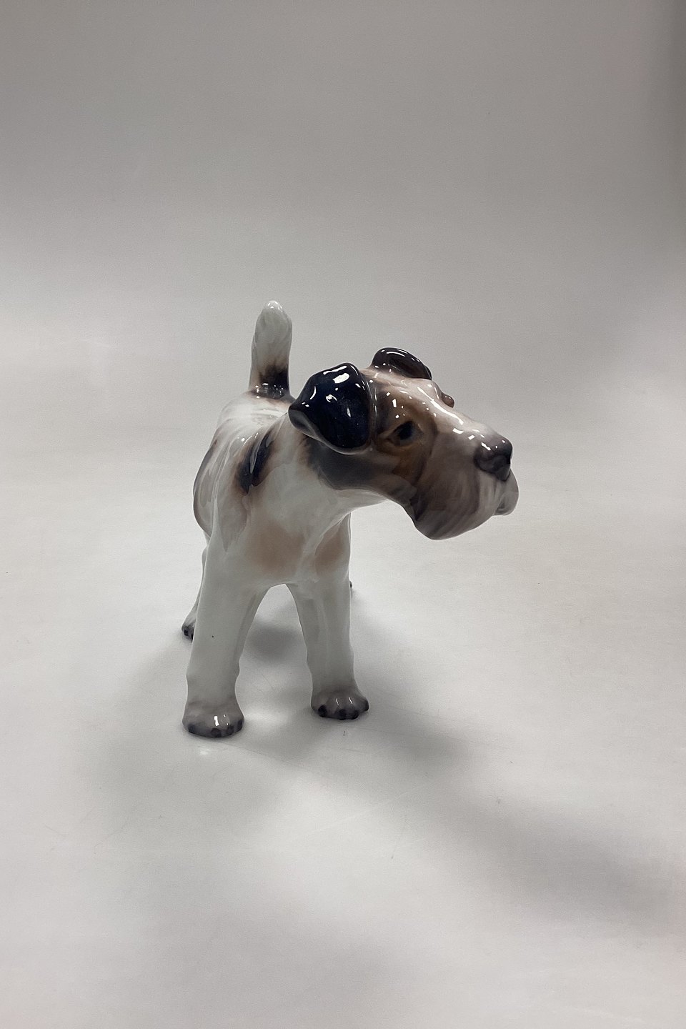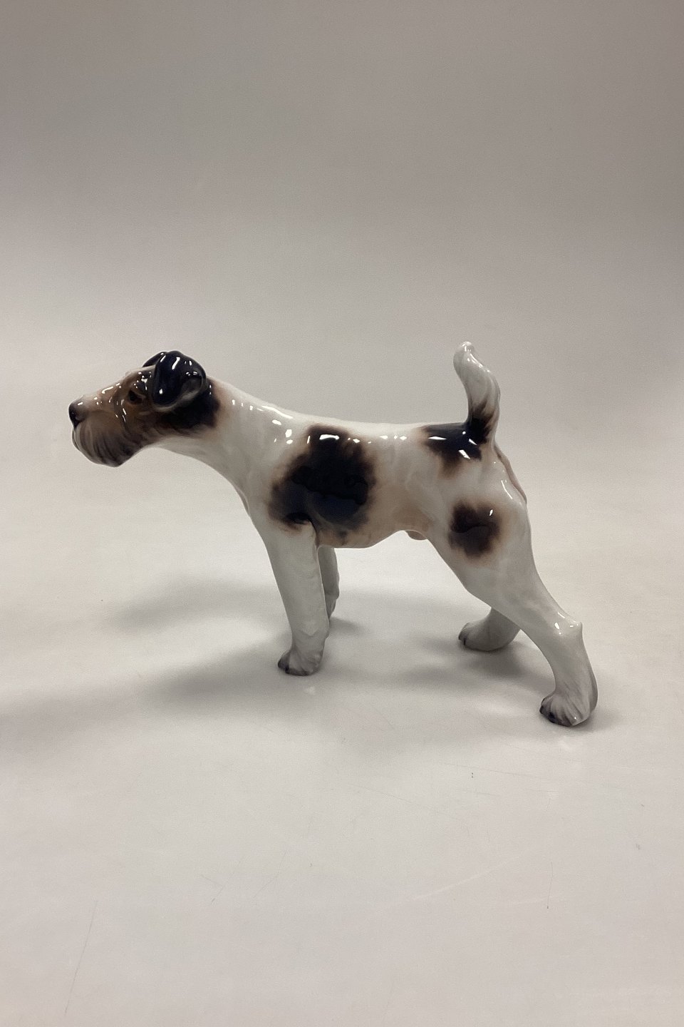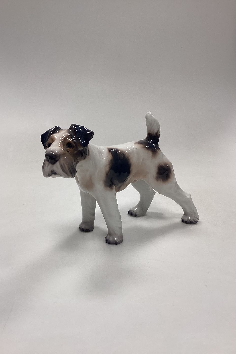 Dahl Jensen Figurine - Wire Fox Terrier No. 1009. White with dark markings.