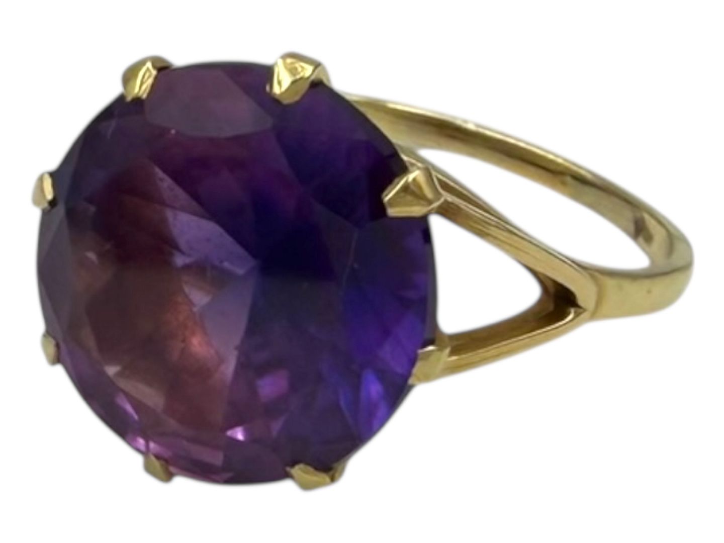 14 karat guld ring med stor lilla ametyst - Str. 62