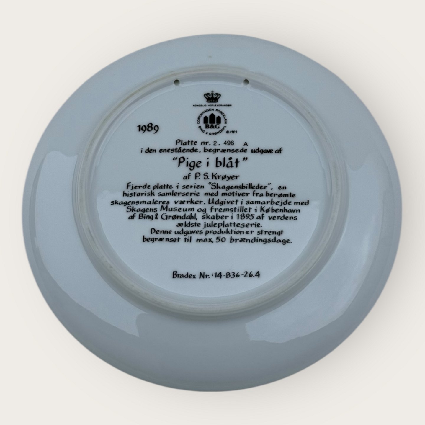 Bing & Grondahl, Skagensmalerne, 1986, Plate no. 2, # 496A, “Girl in Blue” P.S. Krøyer, 21cm in diameter *Perfect condition*