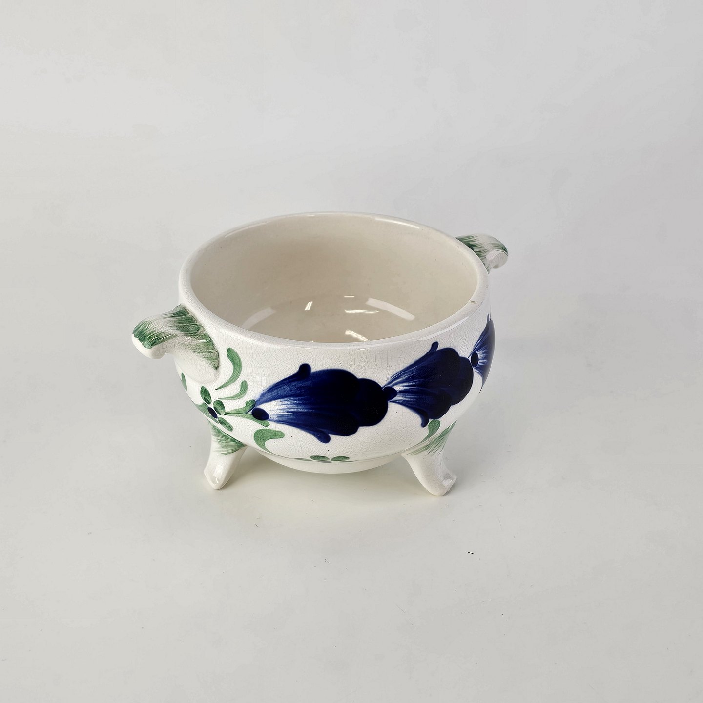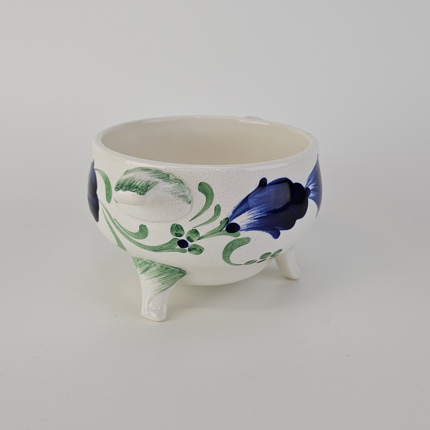 Sukkerskål i hvid fajance fra stellet Blå Cenerarier
