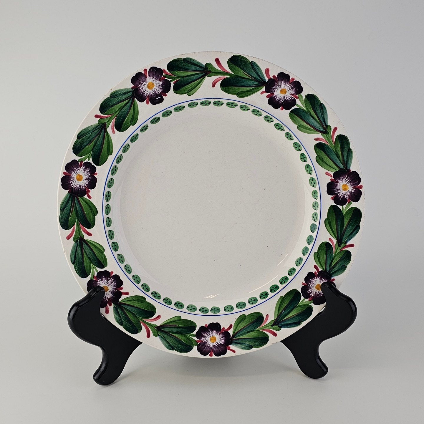 Aurikel er stel i hvid fajance med blomstermotiv