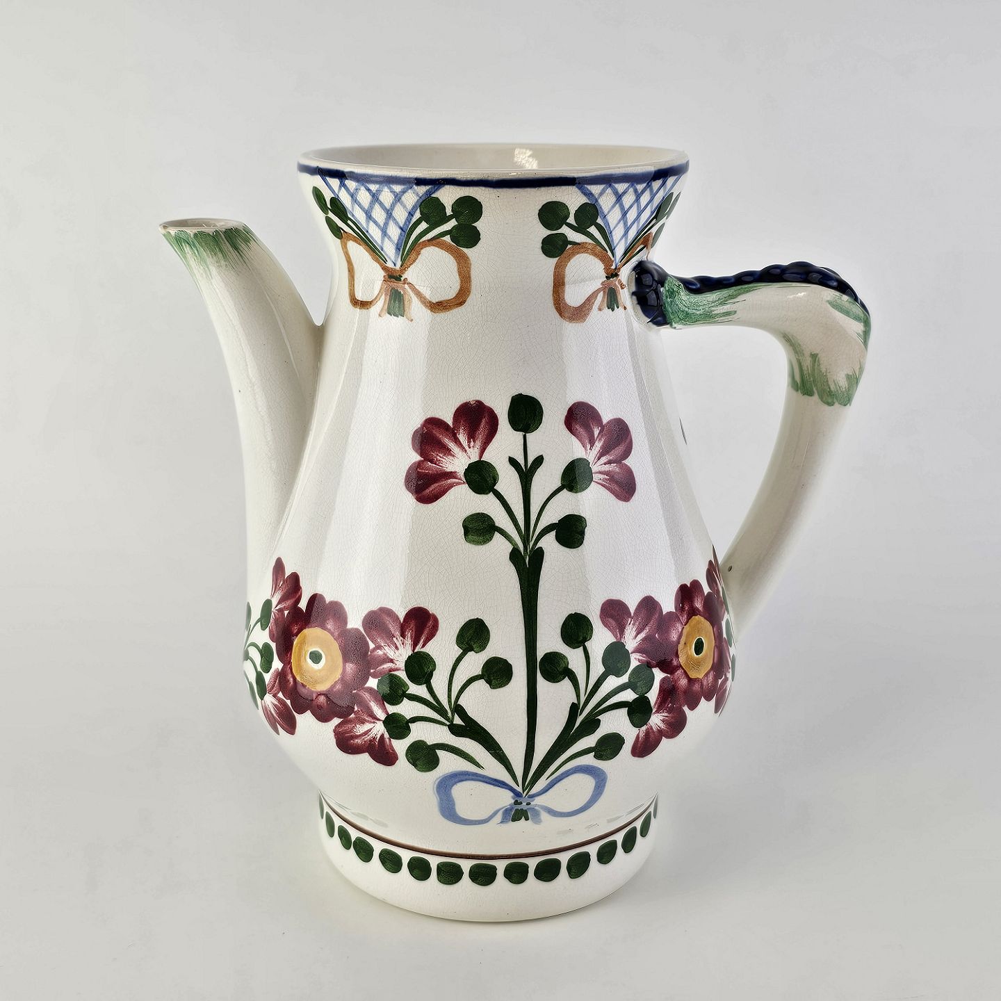 Stellet er i hvid fajance og håndmalet med dekoration af røde blomster