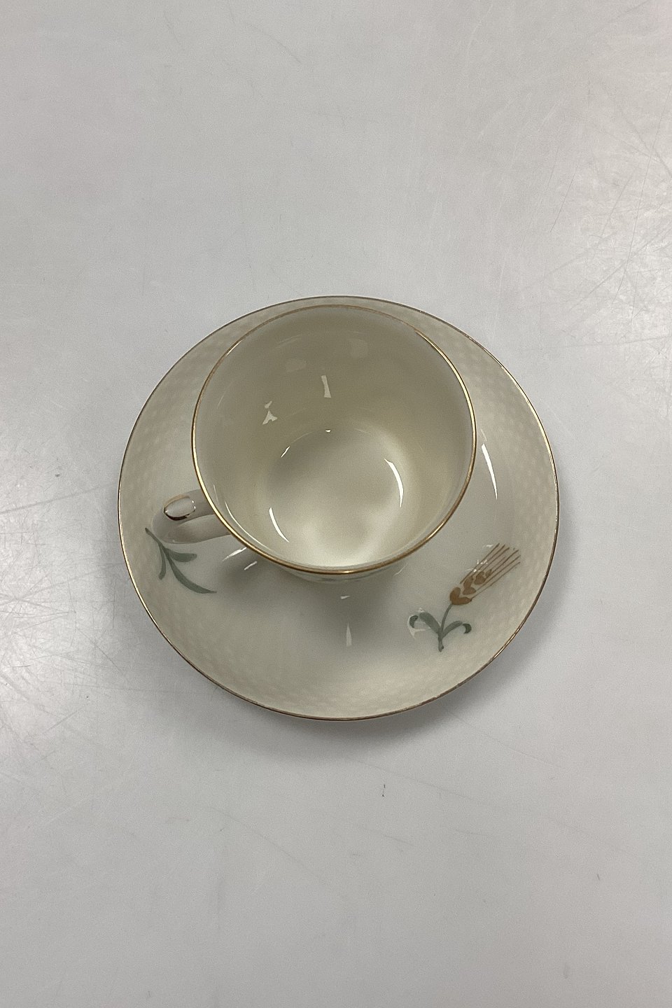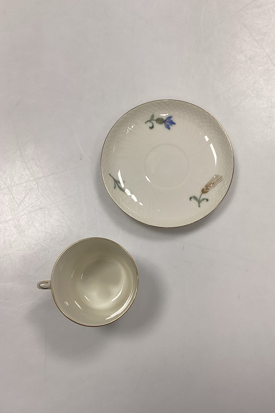 Cremefarvet stel med Blå kornblomstmotiver og Guldkant