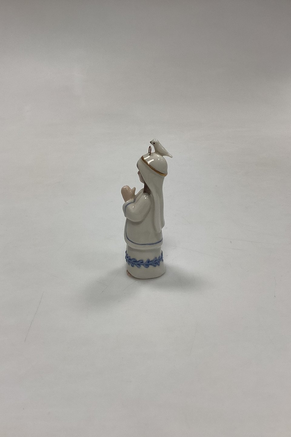 Royal Copenhagen Børnenes Jul 2007 Juleornament - Sara No. 385. Designet af Ingrid Jensen. Pige med fugl. Figur til ophæng.