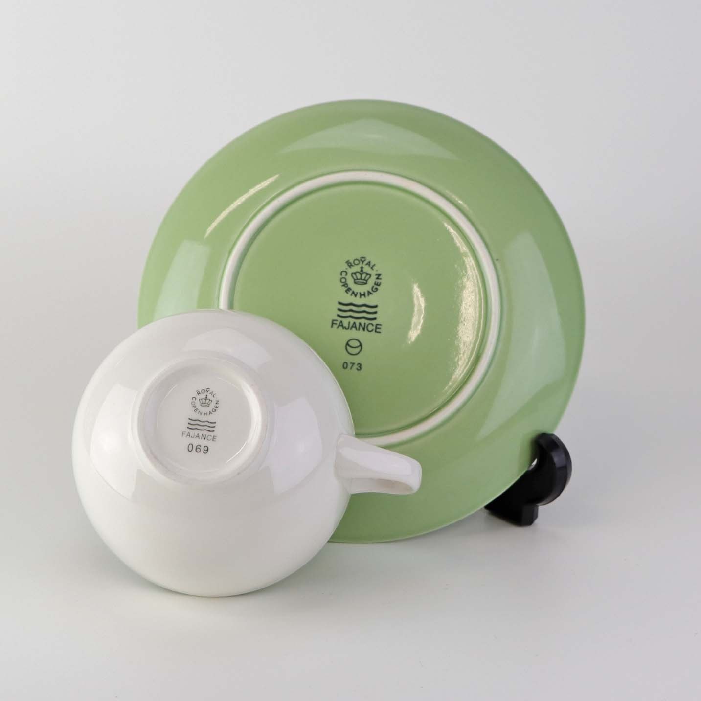 Lille morgenkop i fajance med grøn underkop fra stellet 4 All seasons nr. 069 og 073