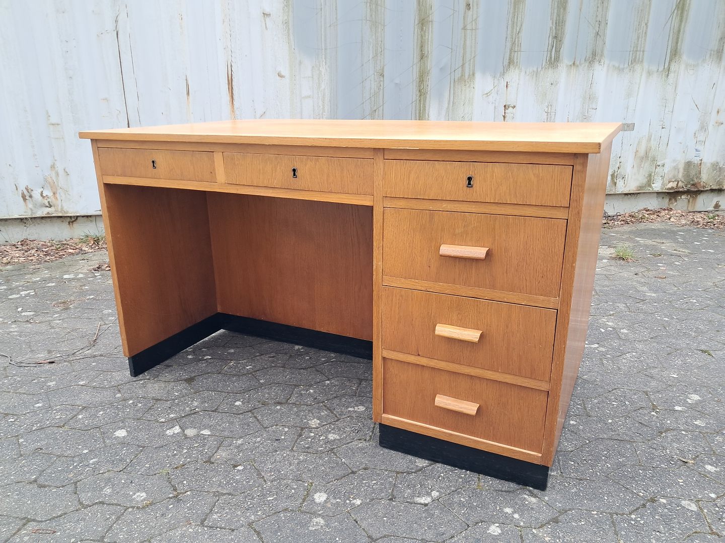 Skrivebord i fineret egetræ, fra 1950erne.