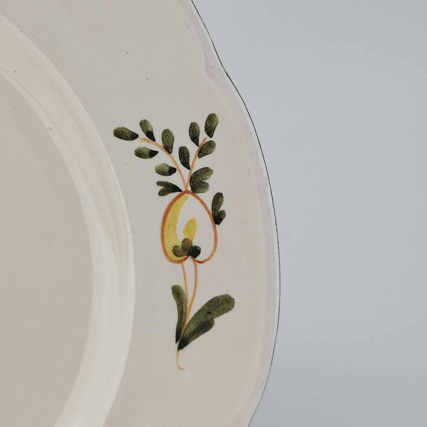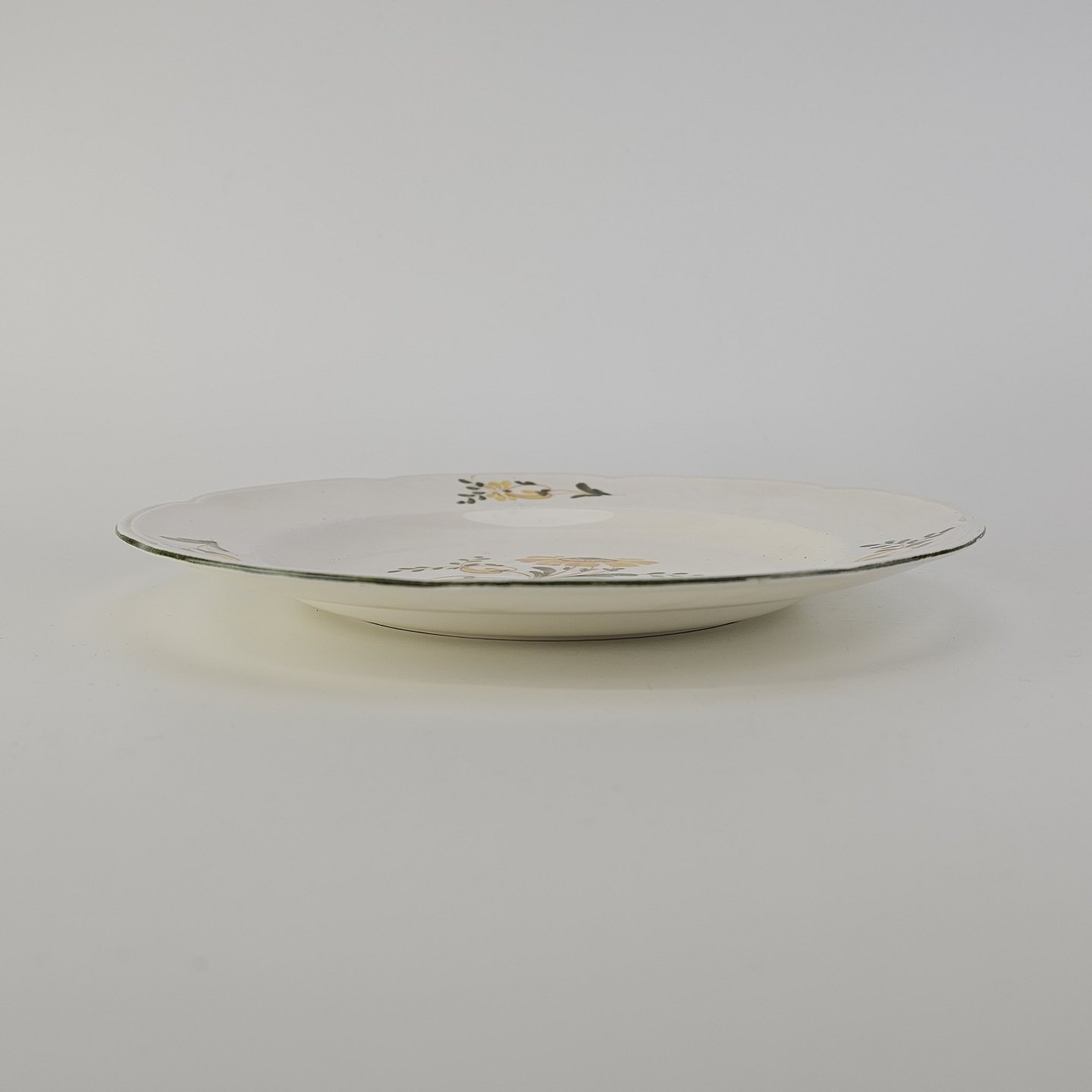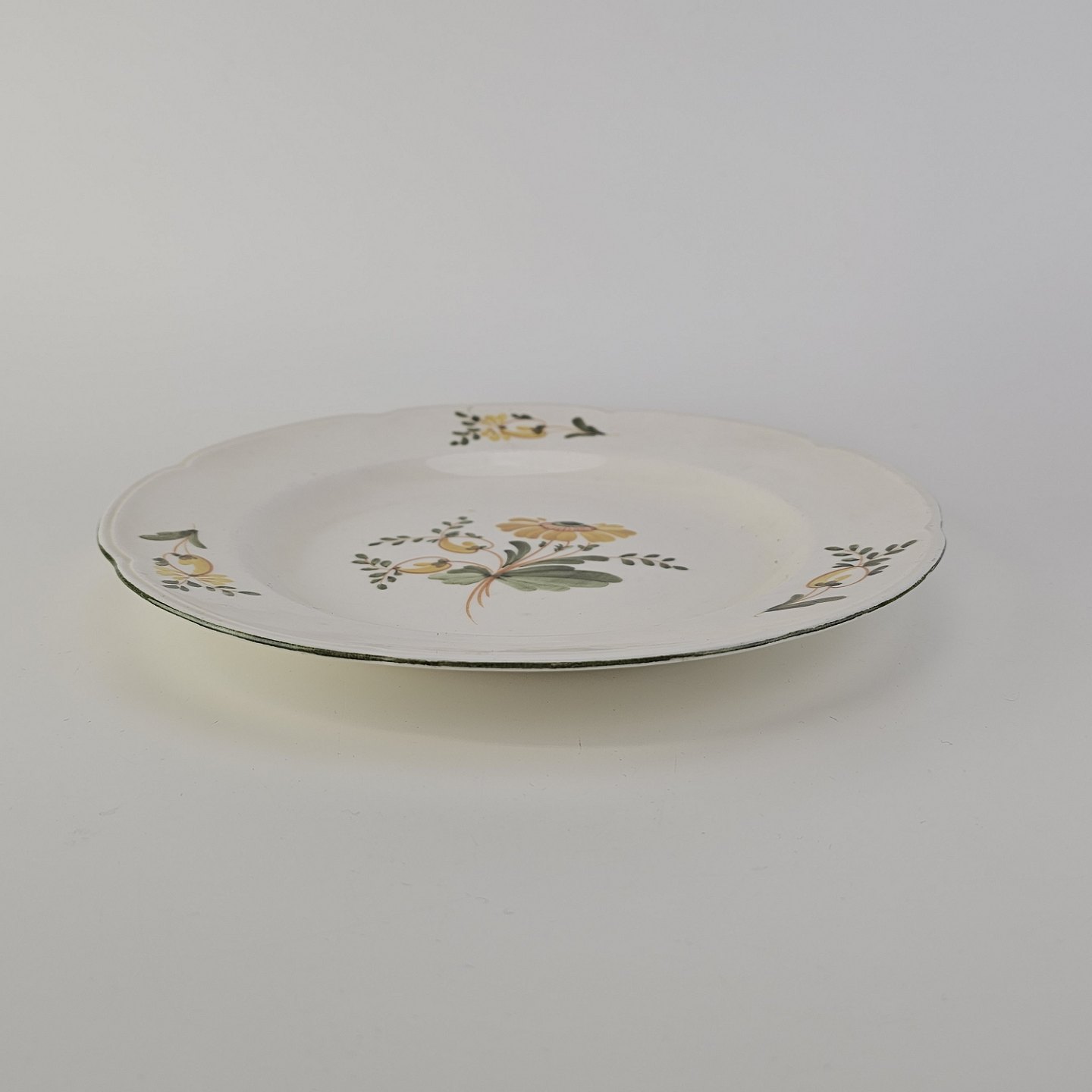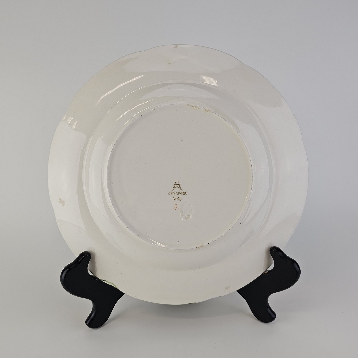 Flad tallerken i fajance fra stellet Maj fremstillet i perioden 1941-1966.