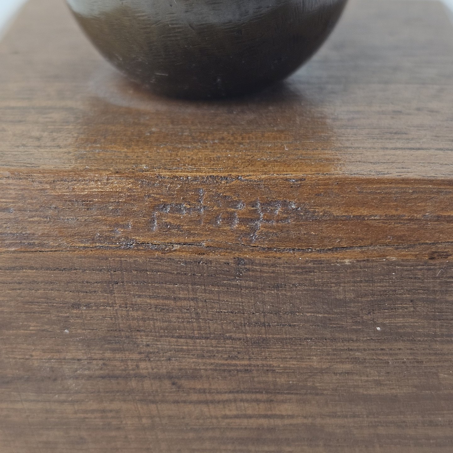 Figur med motiv af en kvinde på træsokkel, bruneret messing