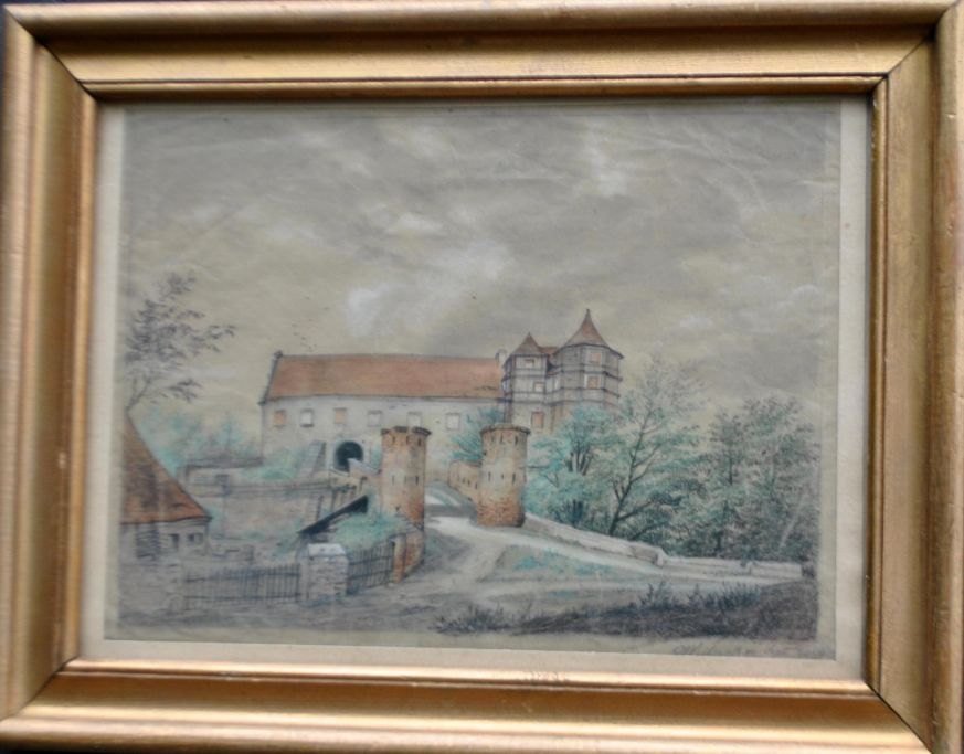 Unknown artist (19th century): A castle. Watercolor. Signed 1844. 20.5 x 27 cm.