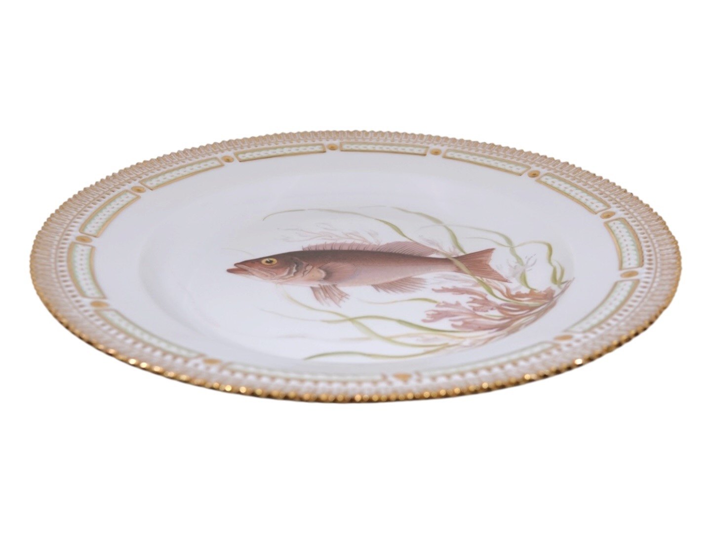 Royal Copenhagen Flora Danica, middagstallerken dekoreret med fisk.