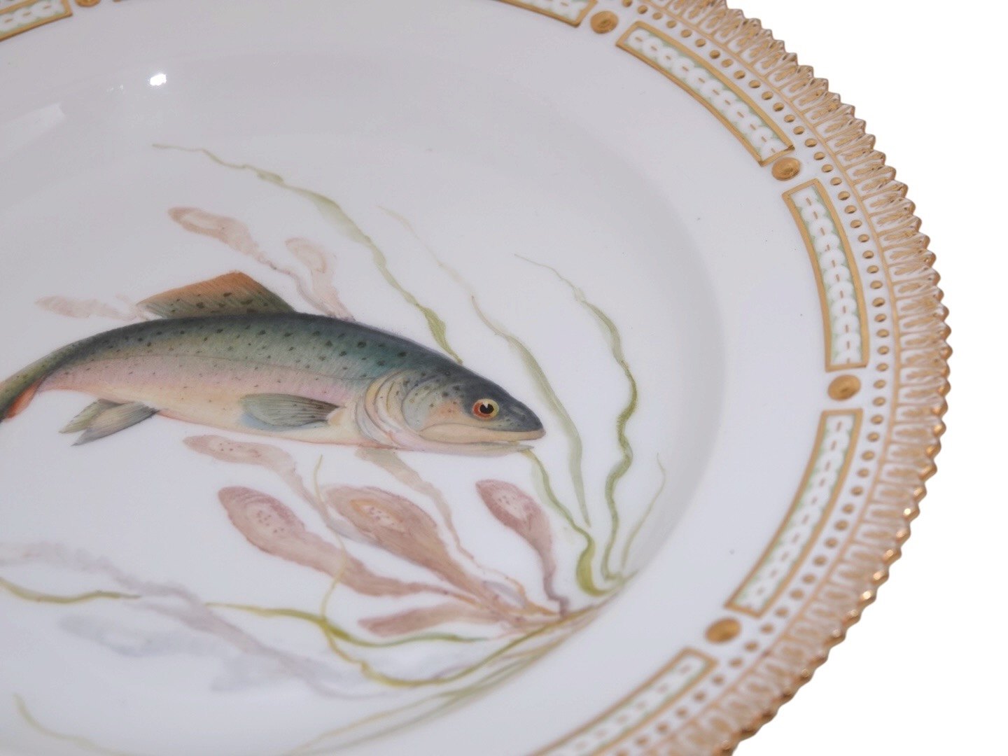 Royal Copenhagen Flora Danica, middagstallerken dekoreret med fisk.