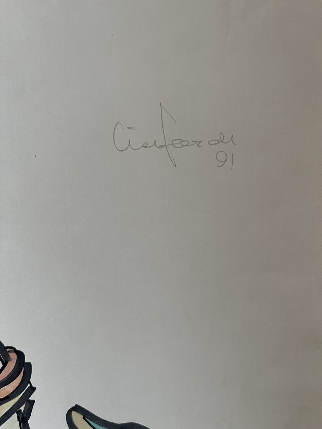 Text available in Danish: Akvarel af Lise Færch - Kvinde med forskellige dyr 1991