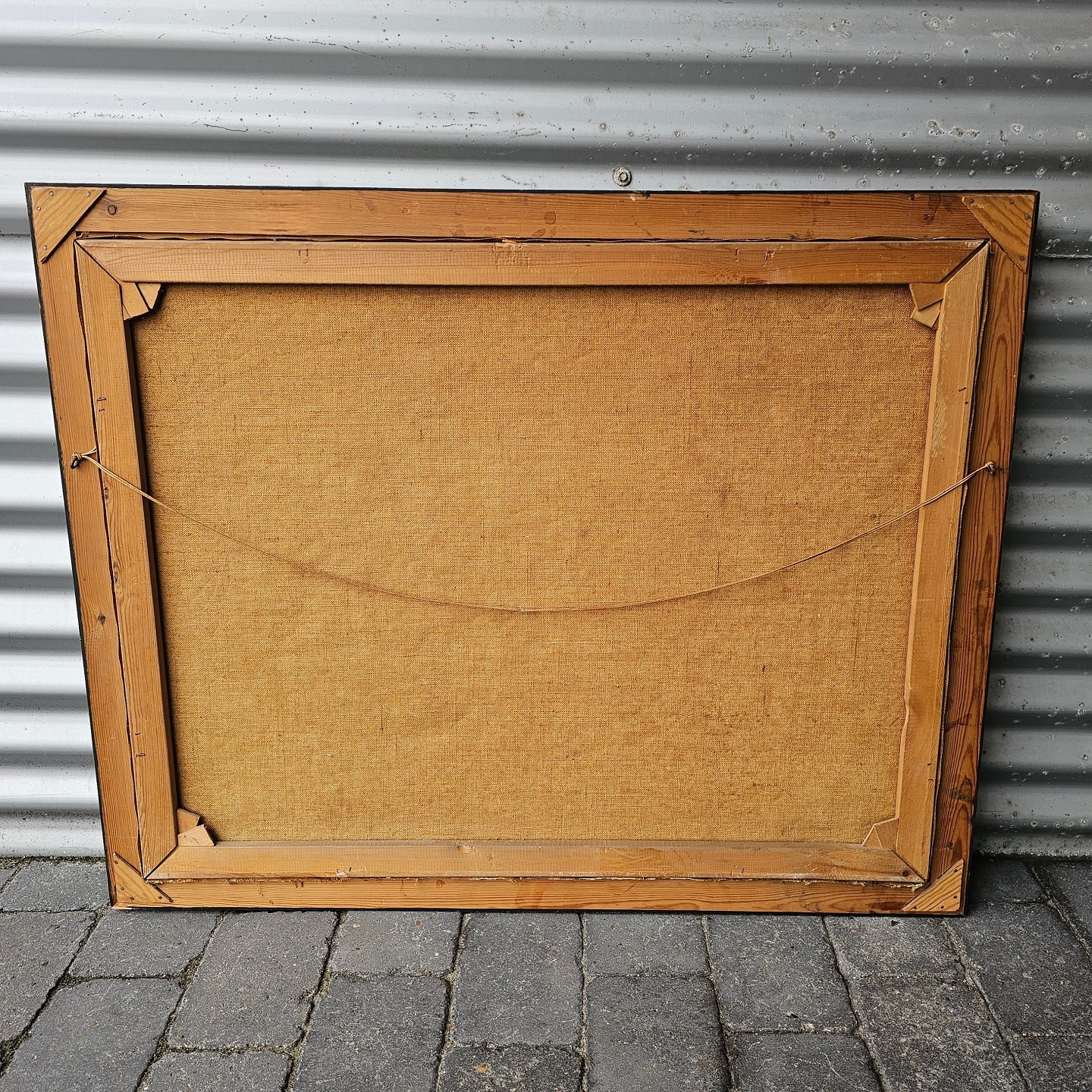 Oliemaleri på lærred monteret i træramme med motiv af hav og klipper. Måske motiv fra Grønland