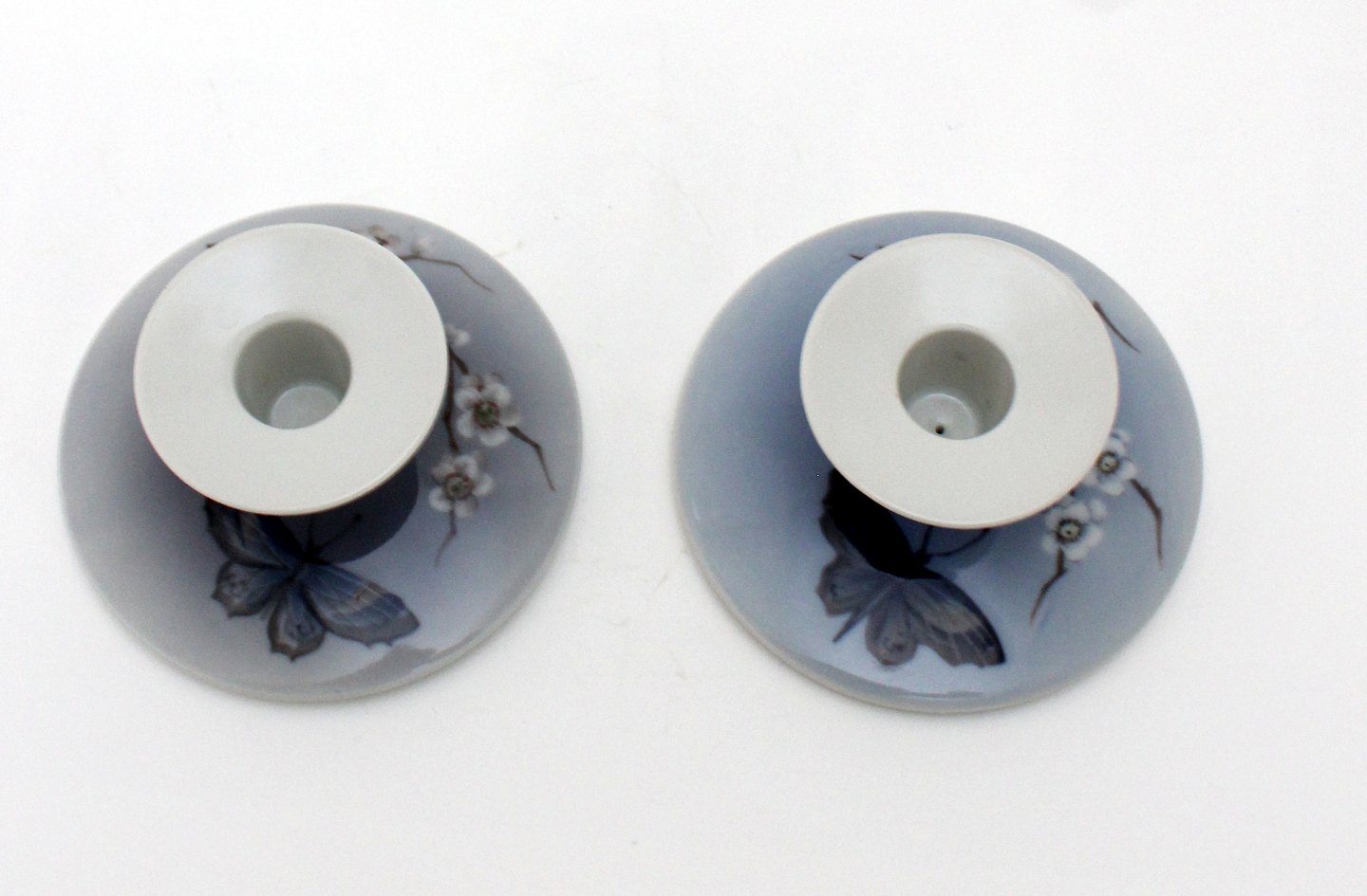Lysestager med blomstergren og sommerfugl, Royal Copenhagen