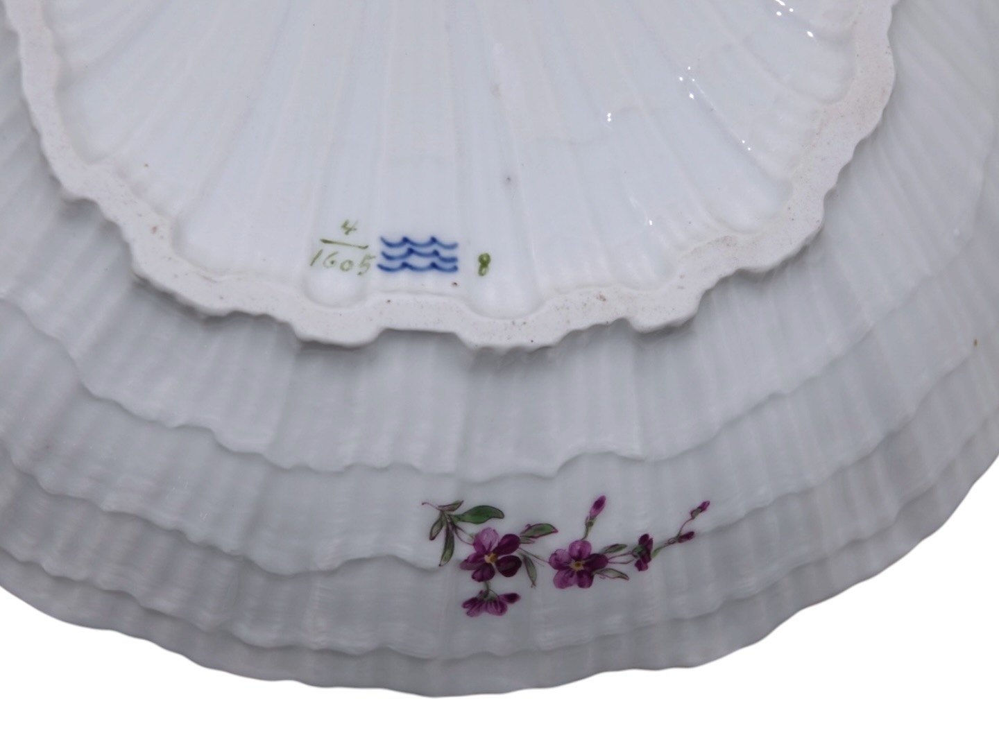 Royal Copenhagen Fuld Saksisk Blomst, sjælden set muslingformet skål.