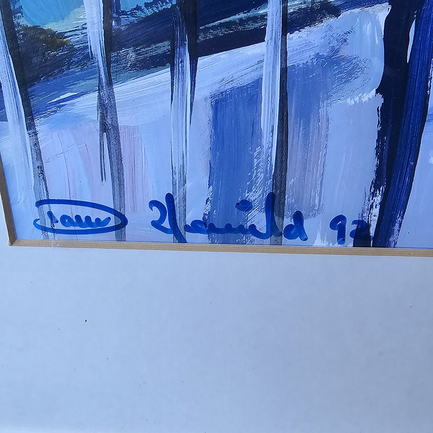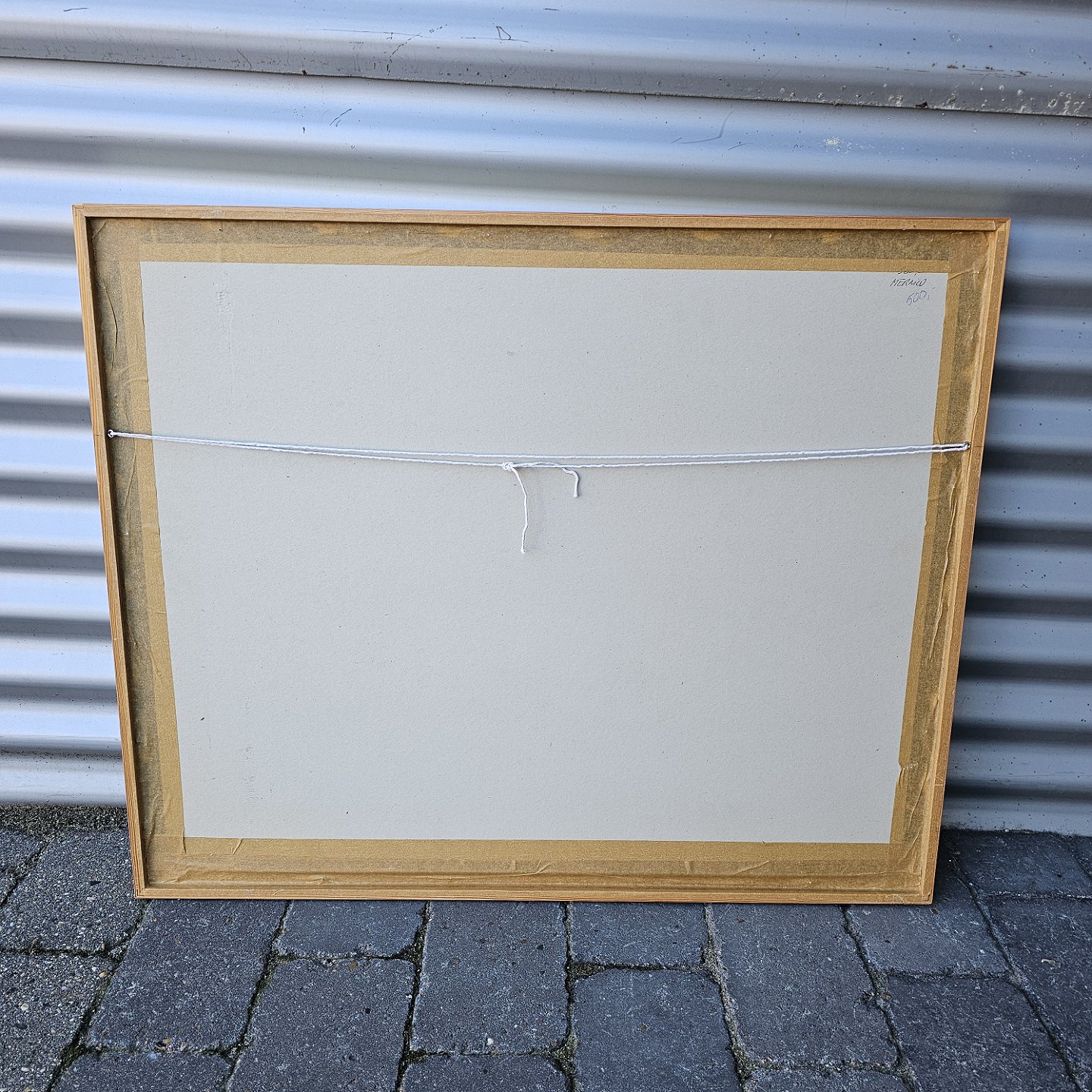 Litografi med motiv af et havnemiljø i guldmalet træramme. Nr. 253/350, dateret 1992
