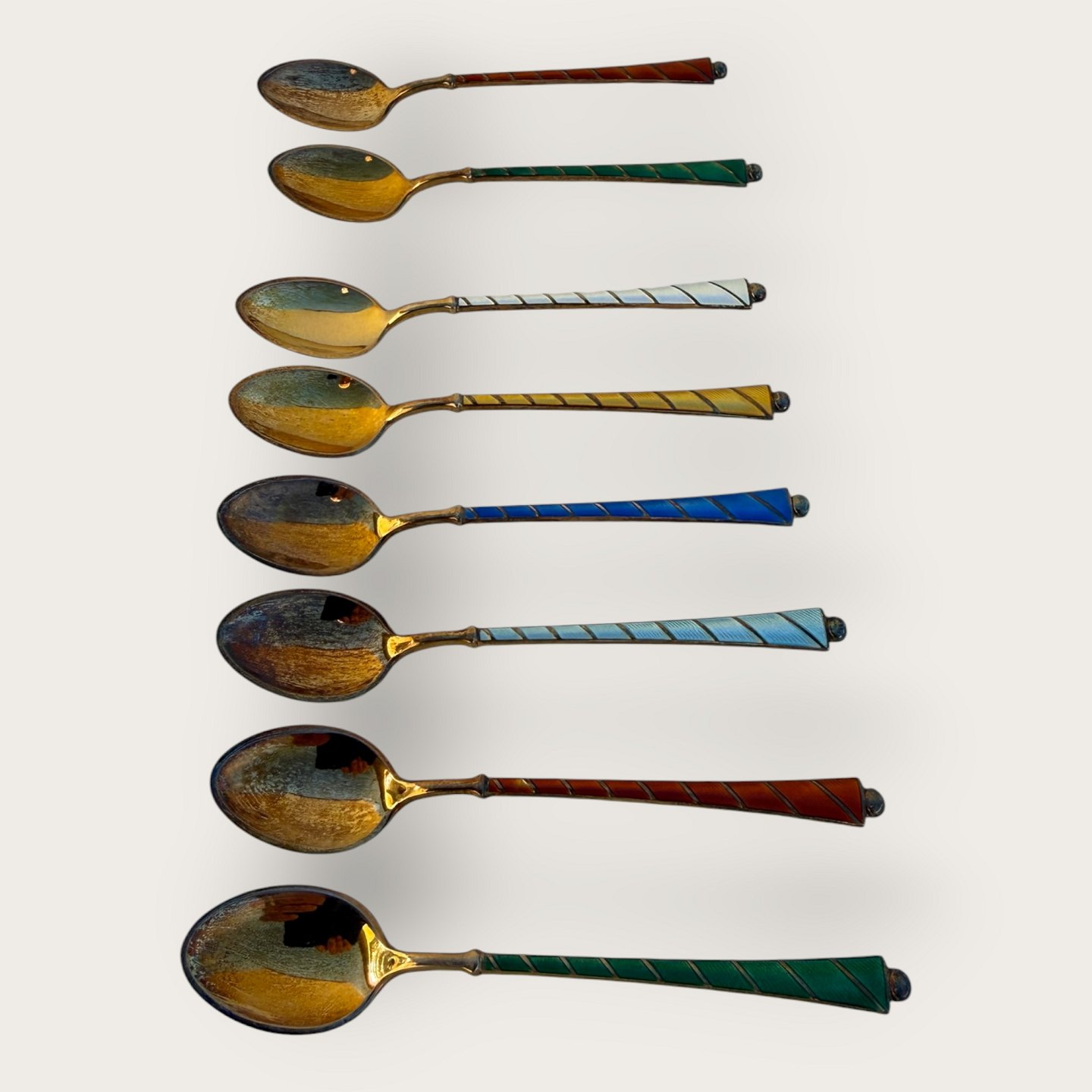 Teaspoons, Enamel and gold-plated sterling silver, Stamped: Ela Sterling 925S, for Egon Lauridsen, 9.5cm long *Good condition*