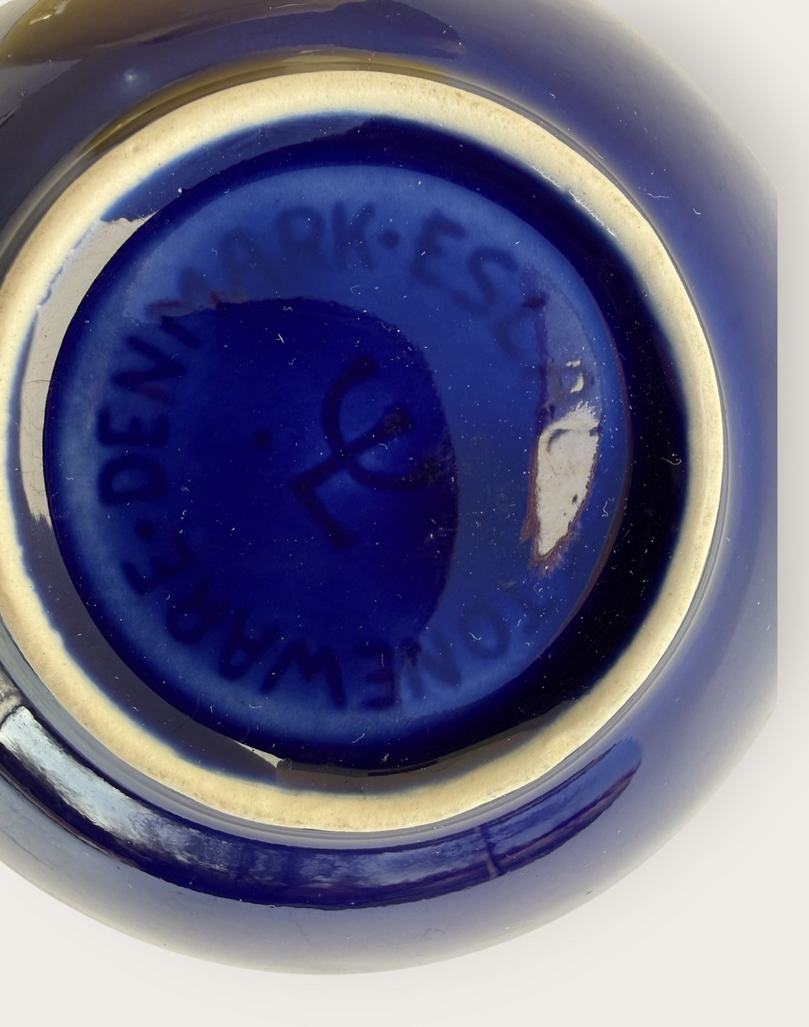 Eslau keramik, to skåle: en blå og en gul, 12cm i diameter *Pæn stand*