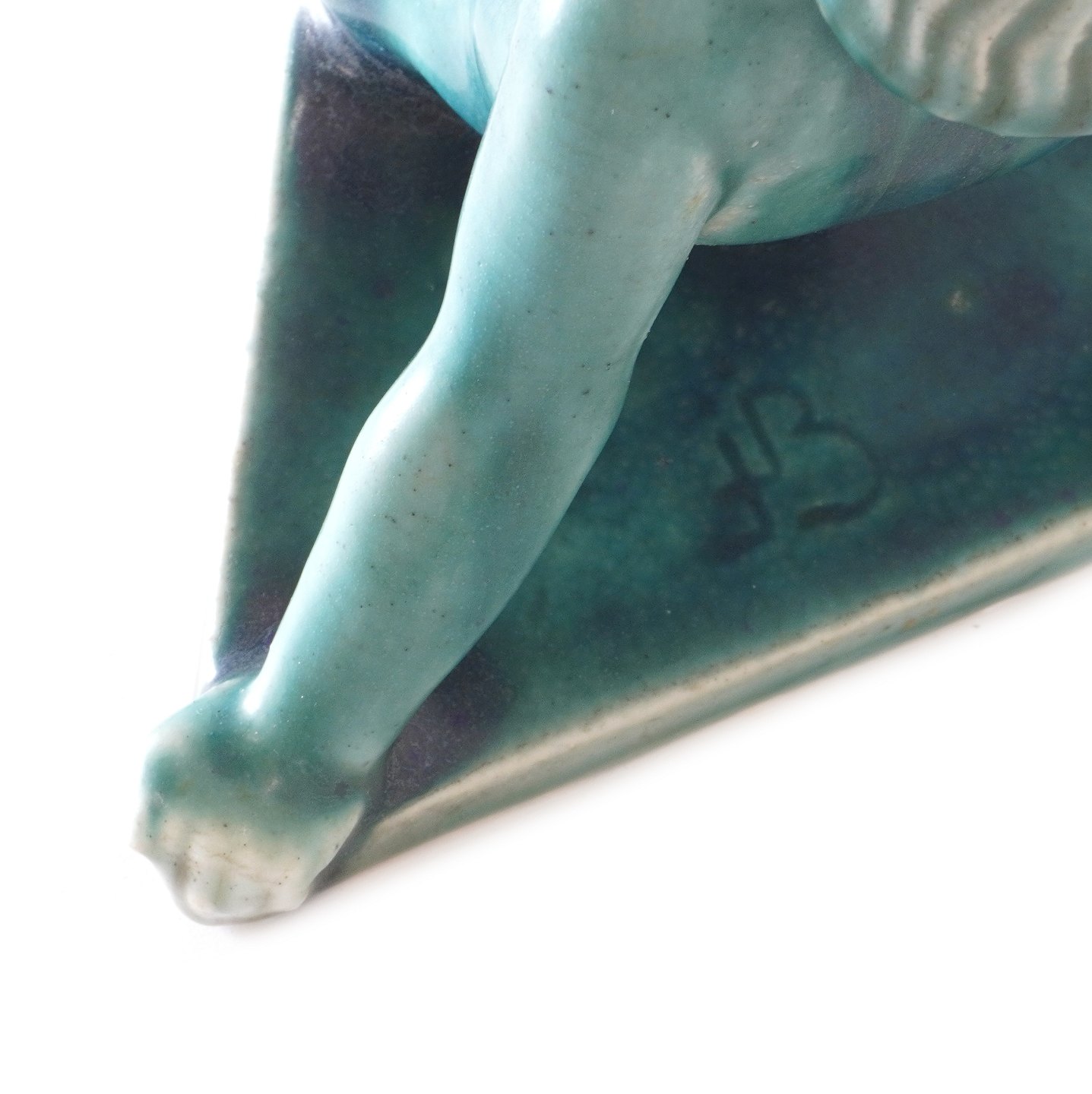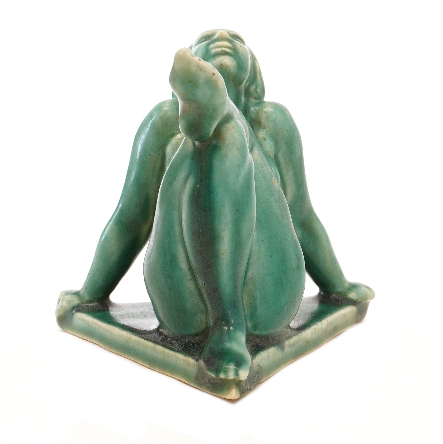 Jens Jacob Bregnø, 1877-1946, Art Deco figur i form af siddende kvinde udført i stentøj