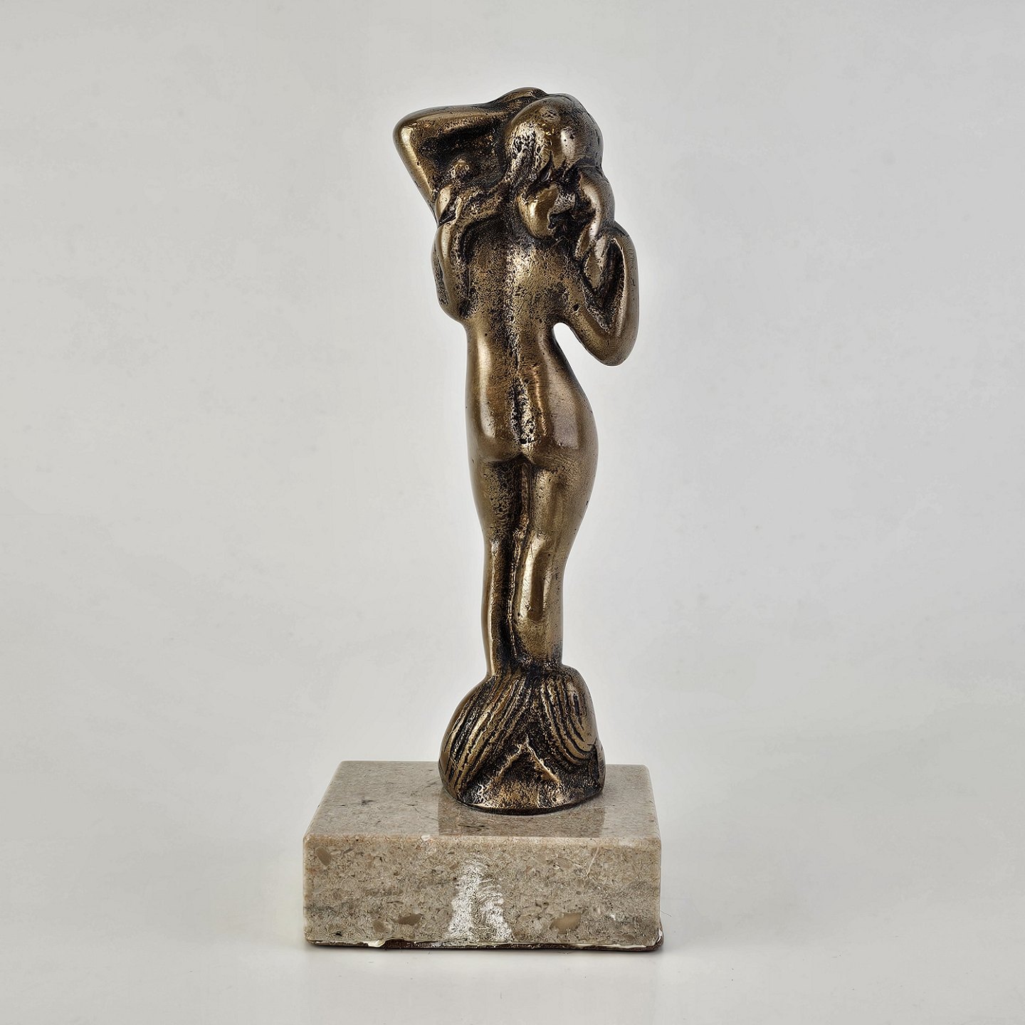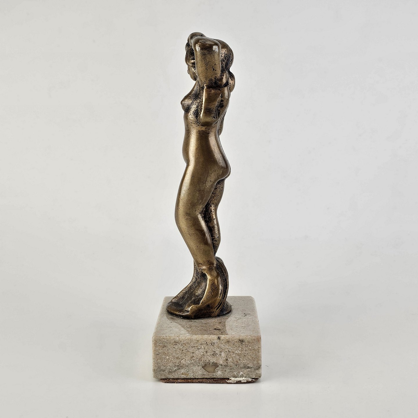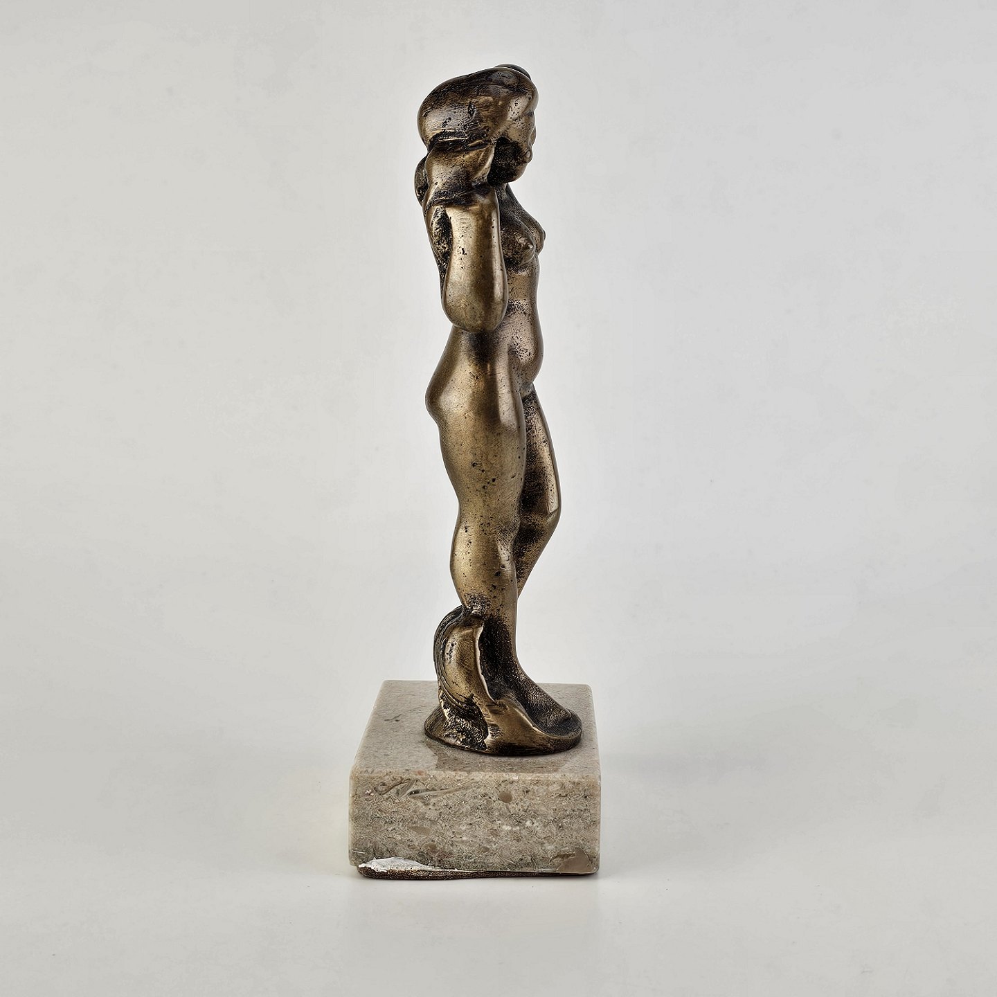Venus figur i messing på en firkantet sten