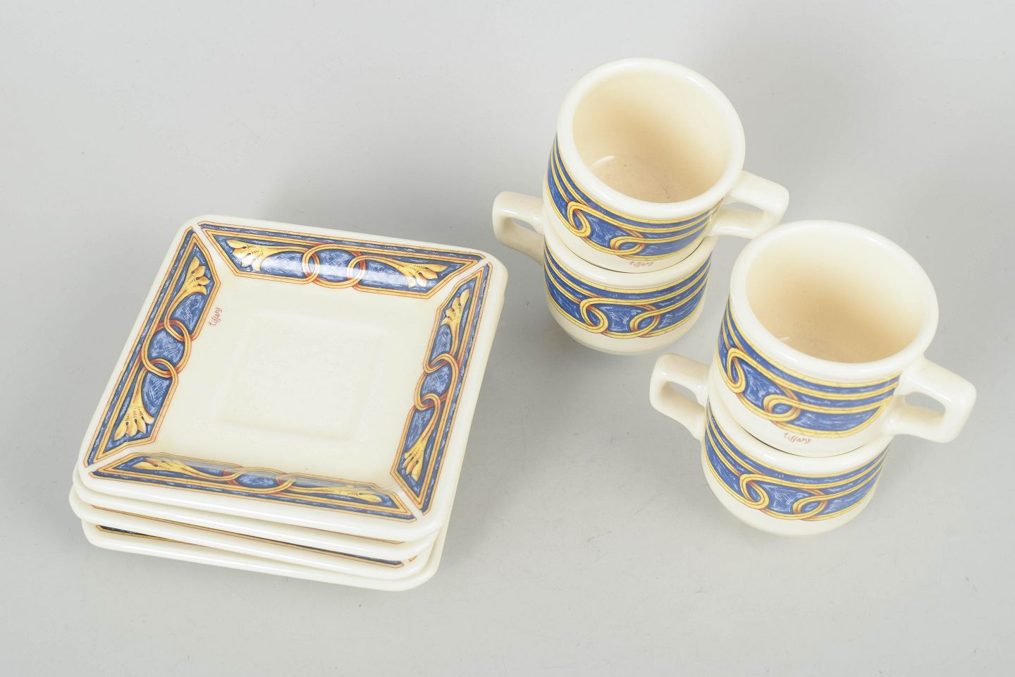 Tiffany Boutique, sæt af fire espressokopper med underkopper.
