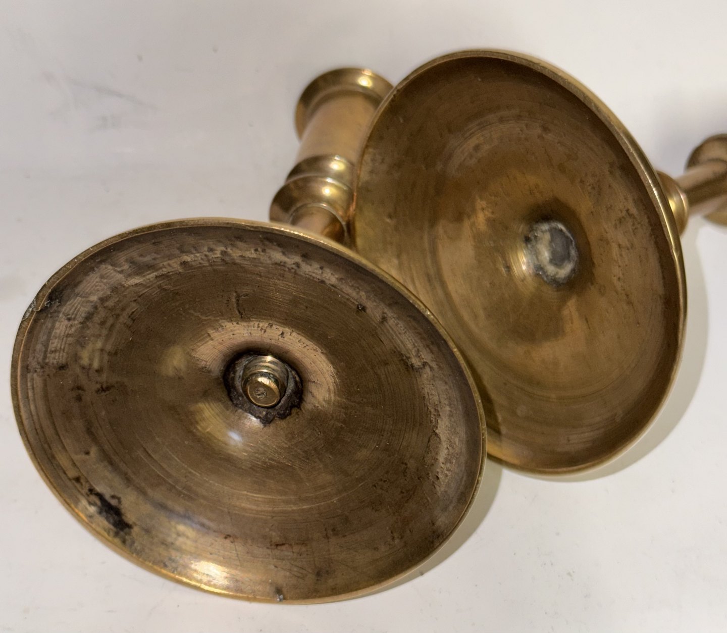 Par lysestager i barok-stil. Formodes at være fremstillet i første halvdel af 1700-tallet. Fremstår i god stand. Den ene stage er loddet. På den anden er det muligt at skrue “piben” af foden. H. 15,3 cm