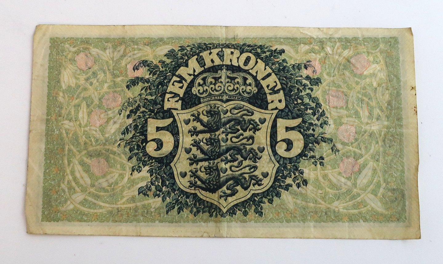 Danmark. Pengeseddel 5 kr. 1942 H.