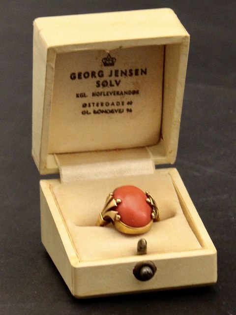 Georg Jensen 14 karat guld ring 213 størrelse 53 med cabochon sleben koral stemplet fra 1930-45 emne nr. 636931
