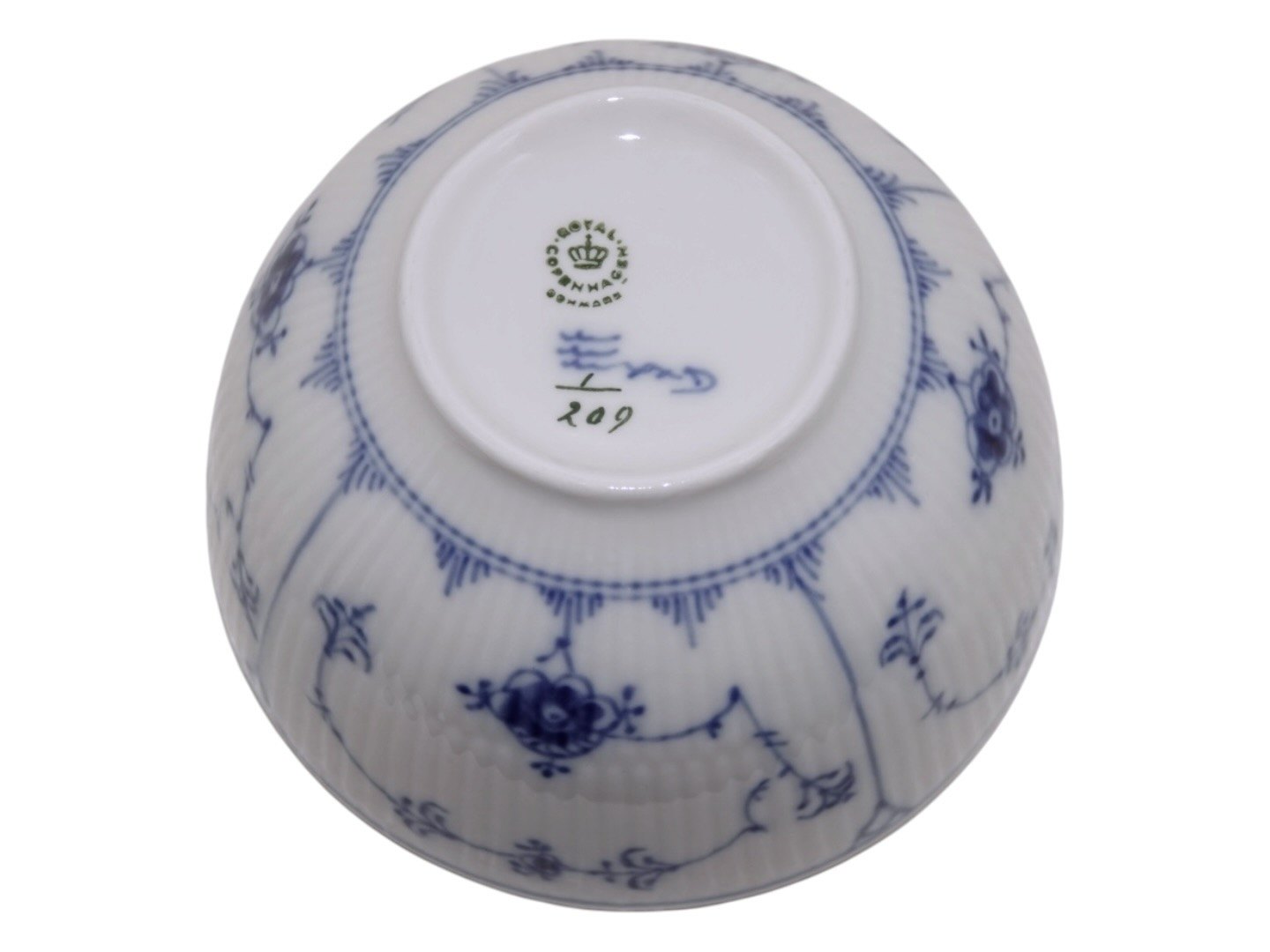 Royal Copenhagen Musselmalet Riflet, lille rund skål.