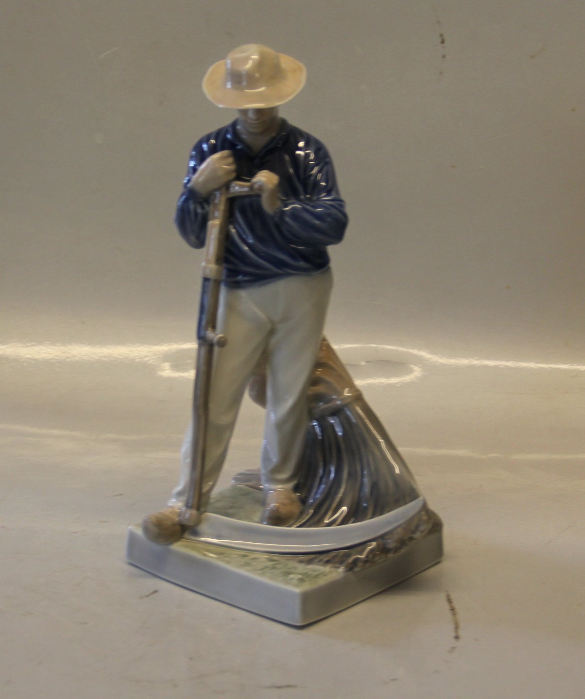Kgl. figur fra Royal Copenhagen 0685 Manden med leen 25 cm Chr. T. 1905 I hel og fin stand Bondedreng med le - høstfolk