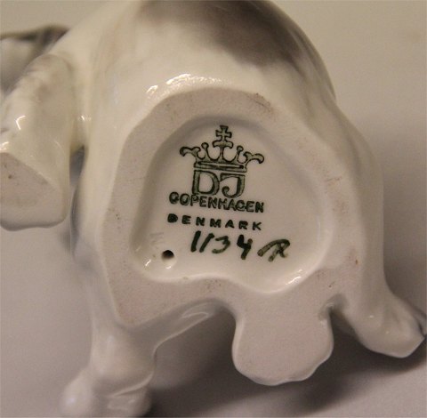 Dahl Jensen. 1134 Pekingeserhvalp 8,5 cm (DJ) Mærket med kongelig krone og DJ Copenhagen 2. sortering i hel og fin stand.