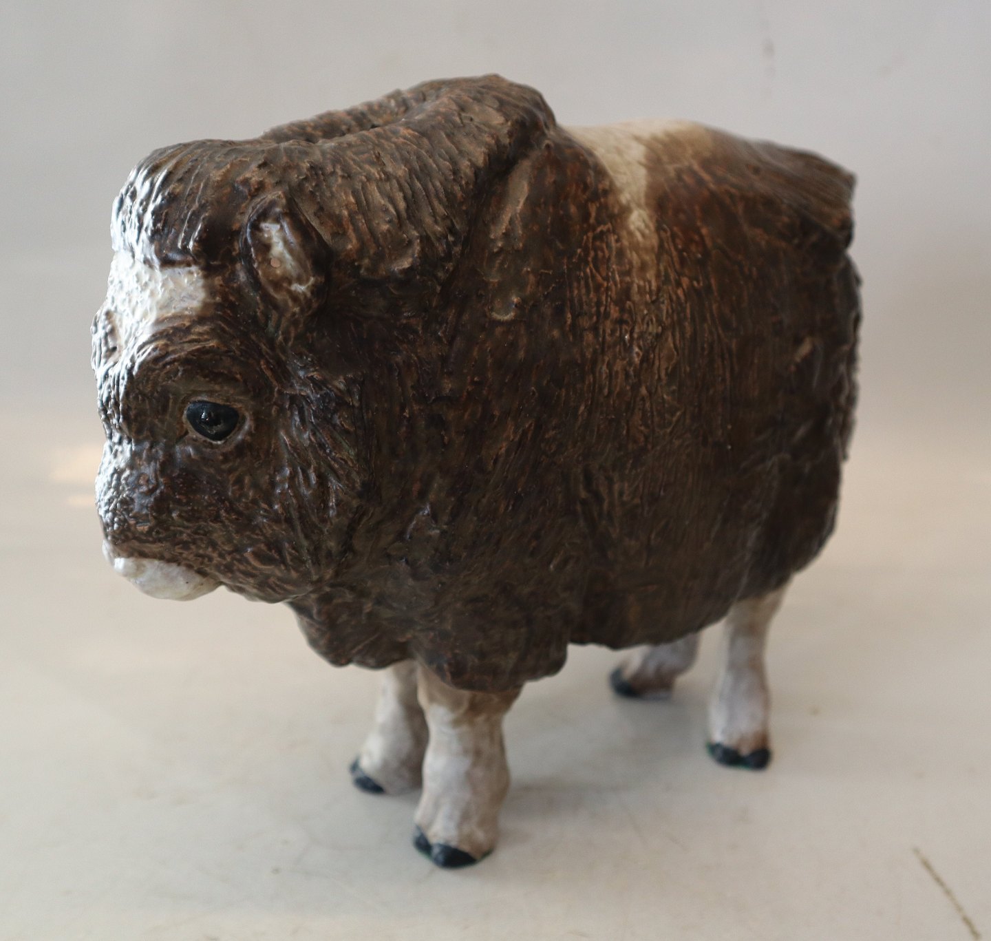 Royal Copenhagen Aluminia fajance 3149 Moskus Okse Jeanne Grut ca. 22 x 26 cm glaseret JG