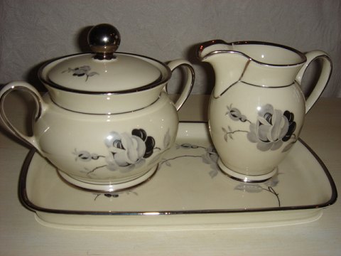 Text available in Danish: Sukker/fløde/bakke, Sort Rose, Kjøbenhavns Porcelæns Maleri