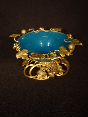 Fransk sukker opsats i blå Opalineglas med blomster i forgyldt Bronce