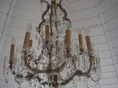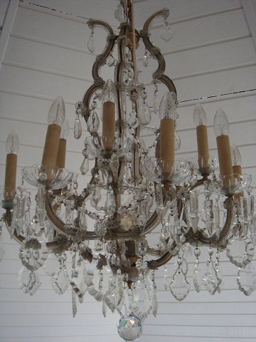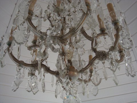 Maria Therese Stor prismekrone Anno:1900-1920 med 12 lysarme og lys i midten. dia: ø 80 cm højde: 128 cm.