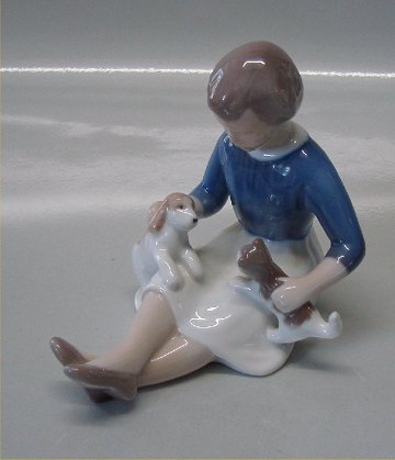 Bing & Grøndahl B&G 2333 Bliv gode venner - pige med hundehvalp og killing Vita Thymann 11 cm I fin og hel stand.